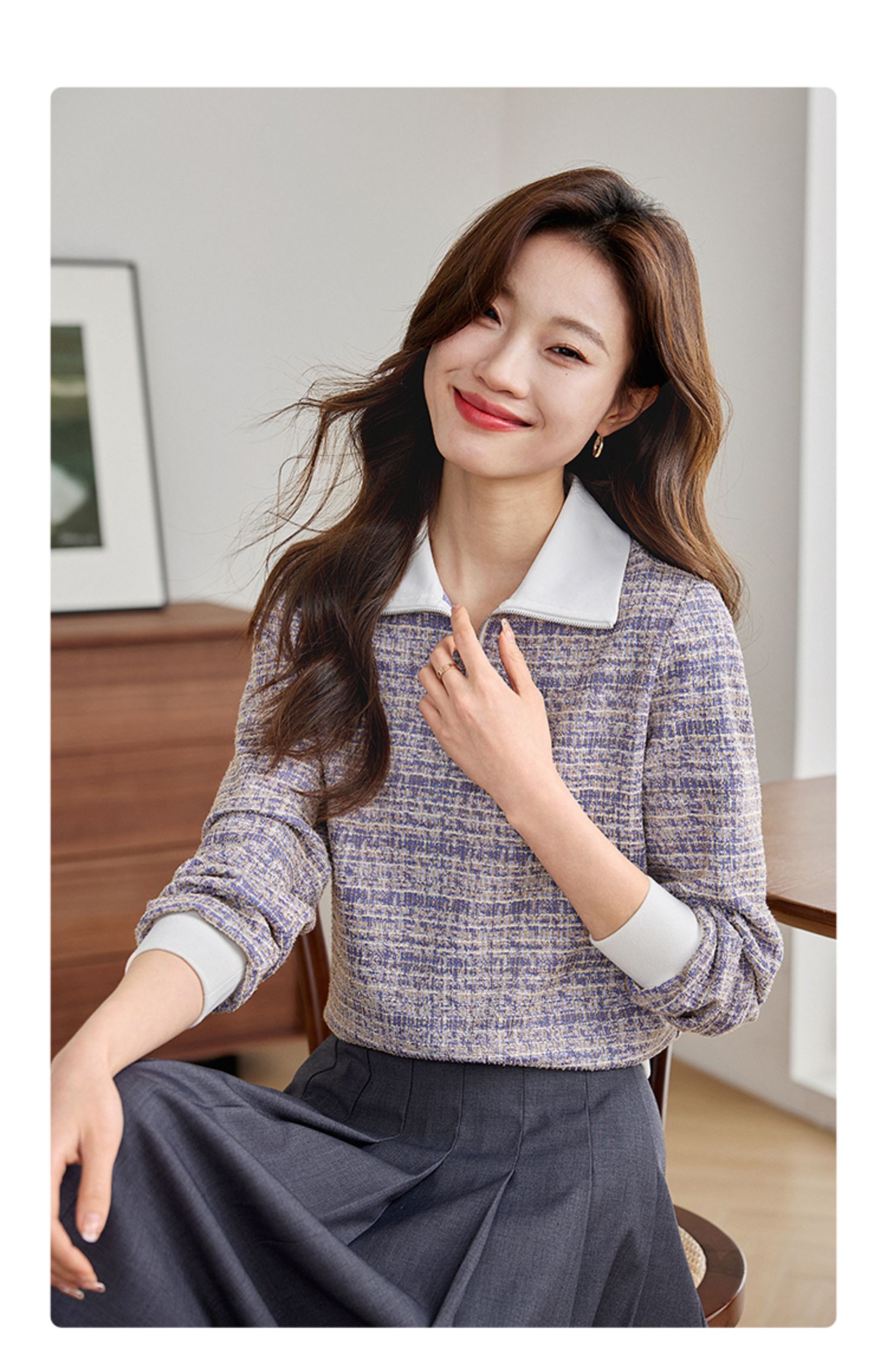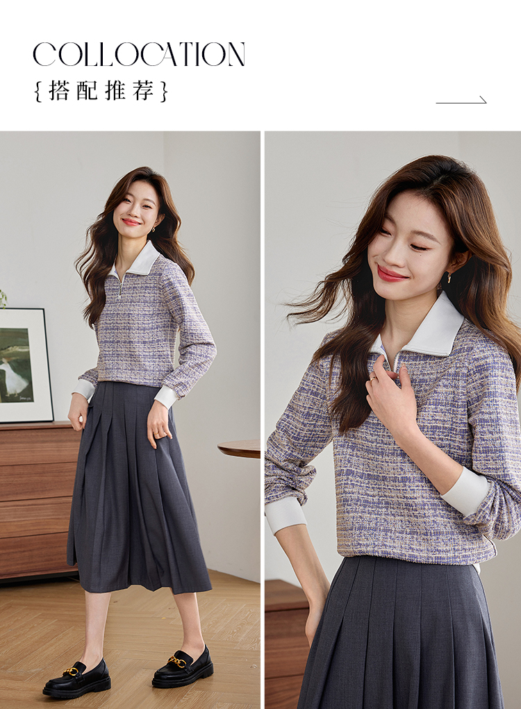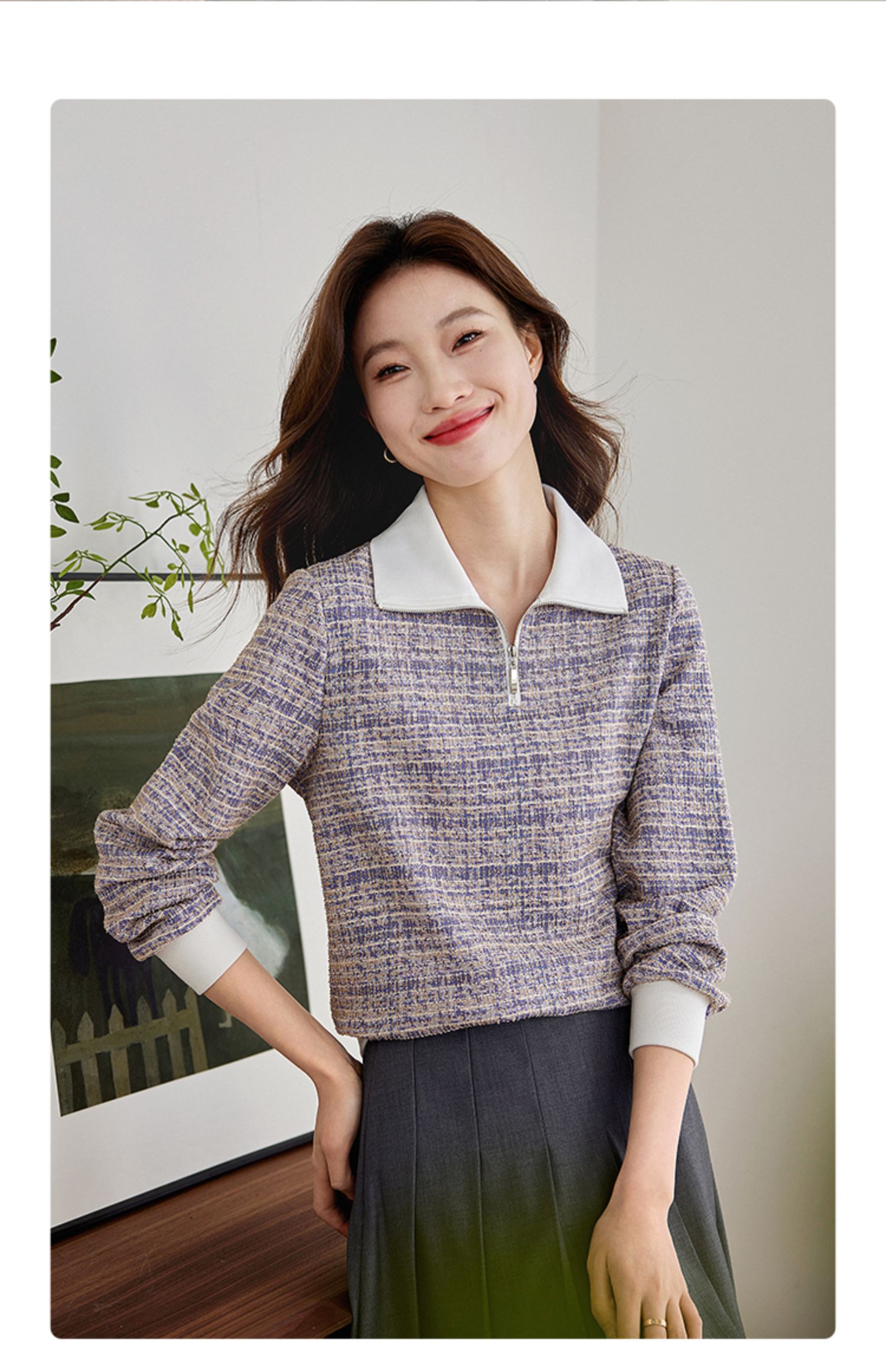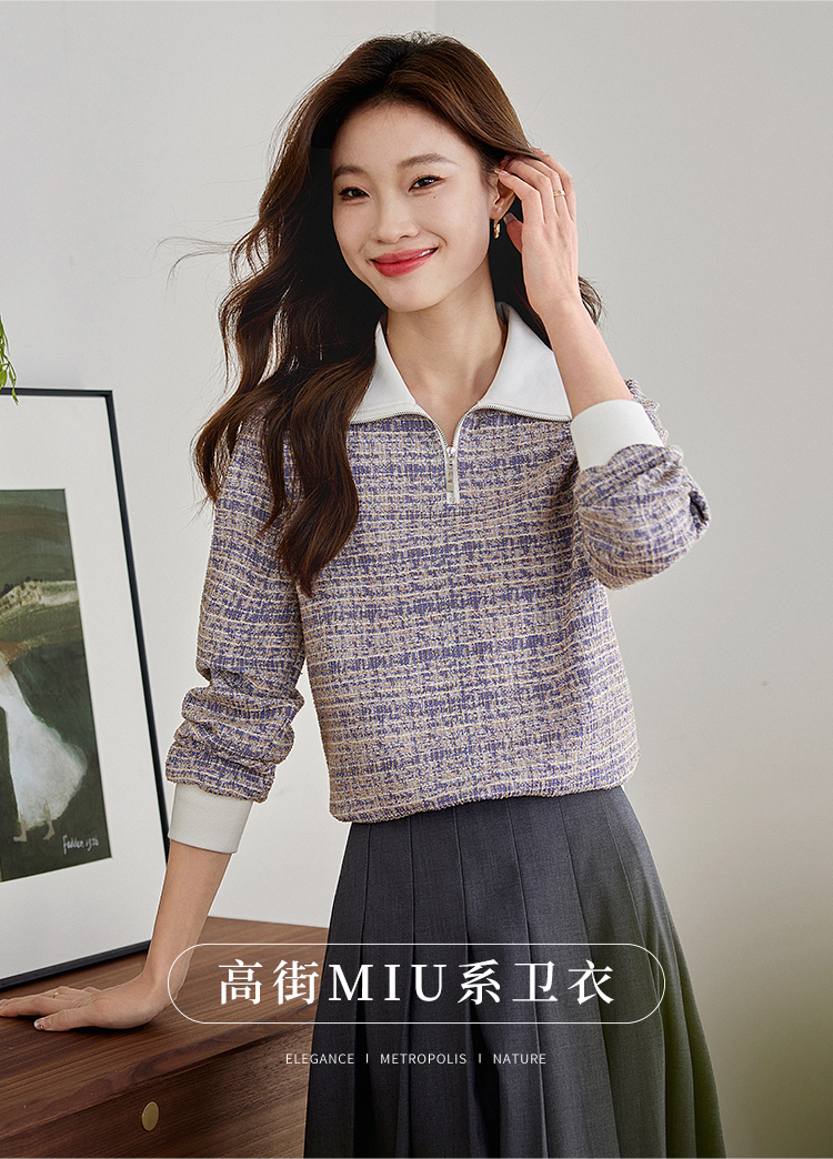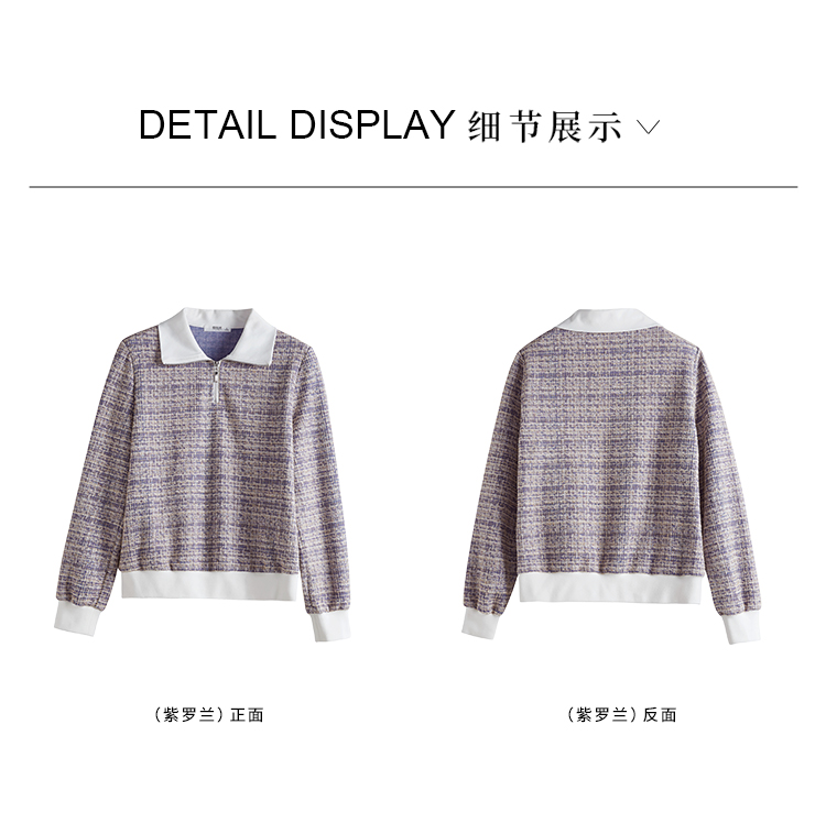 【年终特卖】熙世界小香风POLO领卫衣女2025年秋秋新款时尚宽松撞色粗花呢上衣