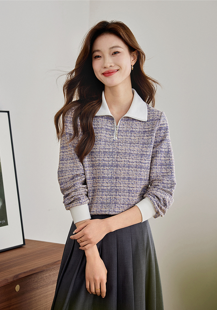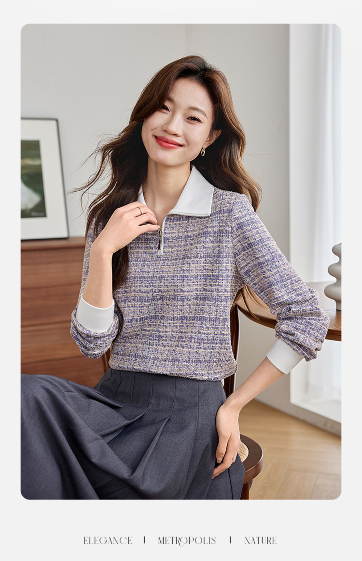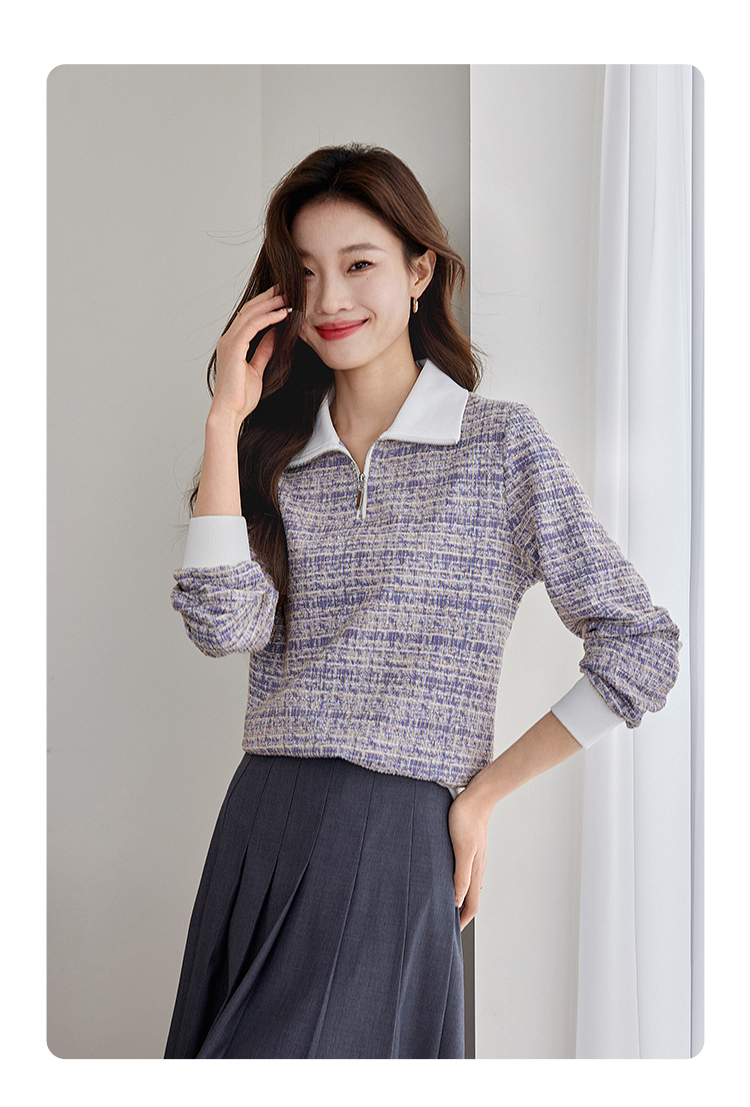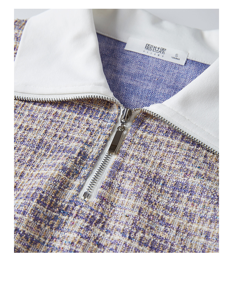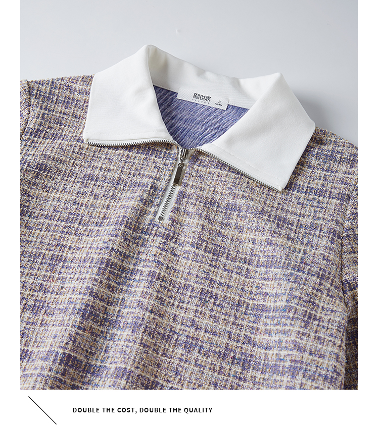 【年终特卖】熙世界小香风POLO领卫衣女2025年秋秋新款时尚宽松撞色粗花呢上衣