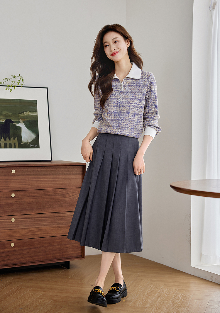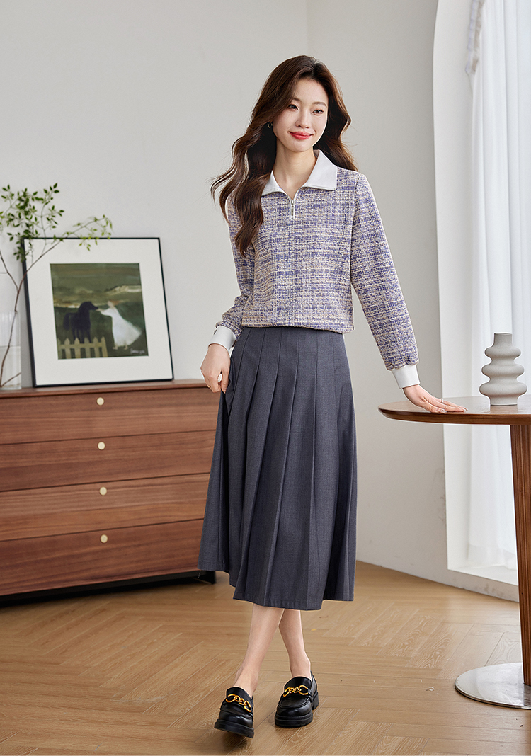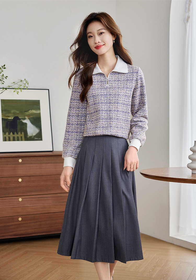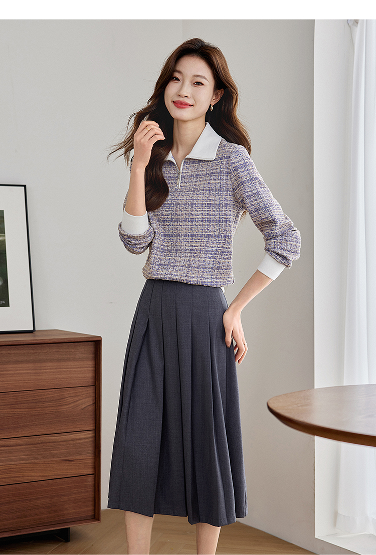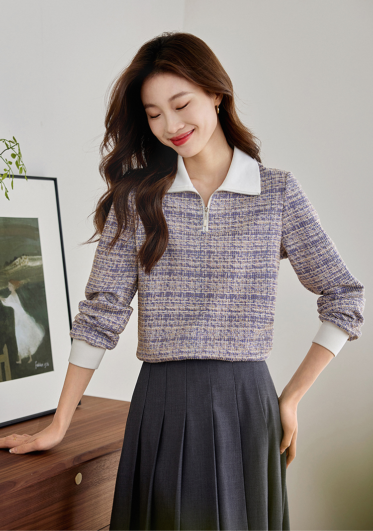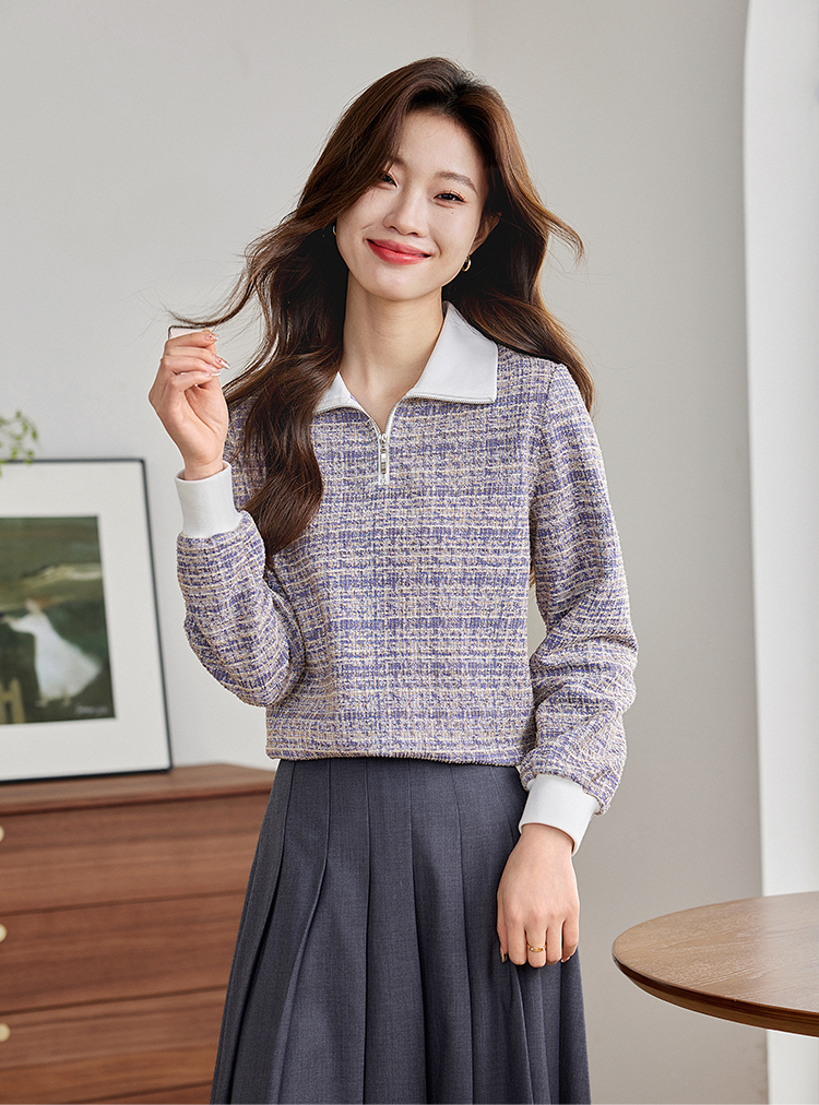 【年终特卖】熙世界小香风POLO领卫衣女2025年秋秋新款时尚宽松撞色粗花呢上衣