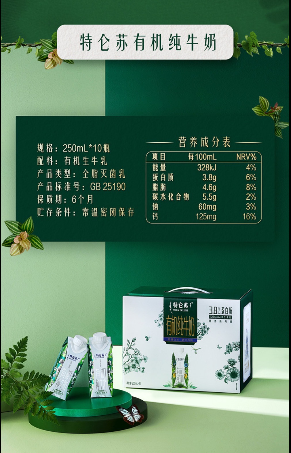 特仑苏有机纯牛奶全脂灭菌乳梦幻盖250ml*10盒3.8g蛋白质早餐奶礼盒装