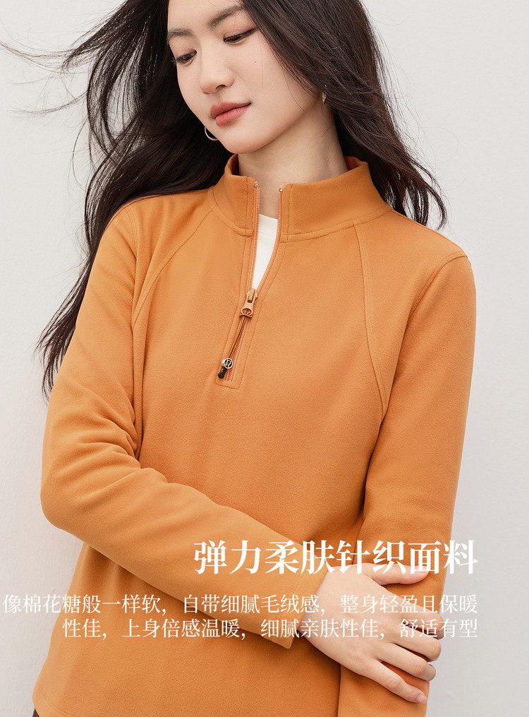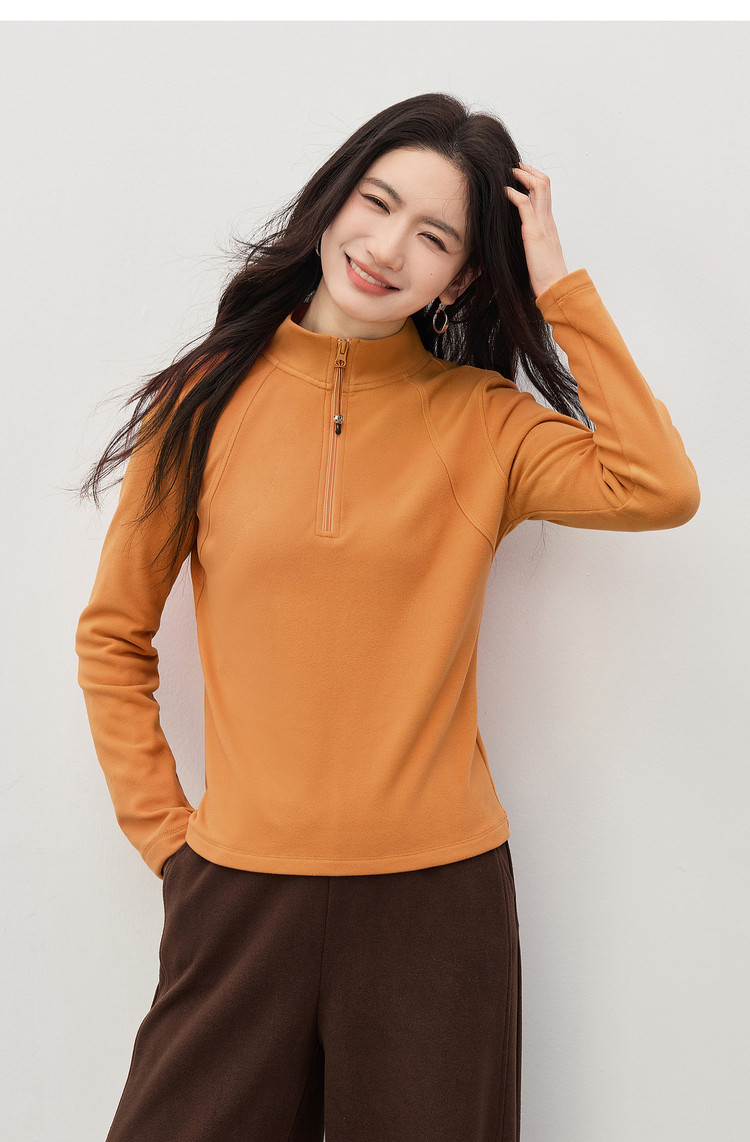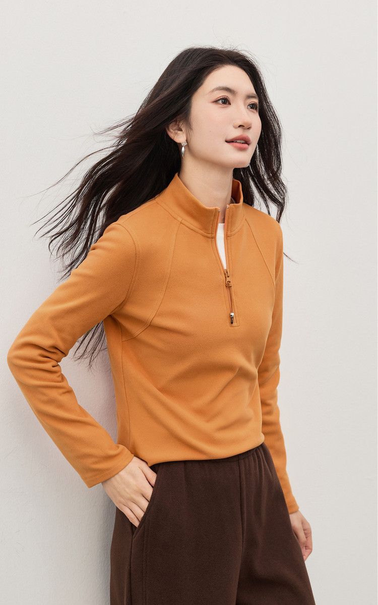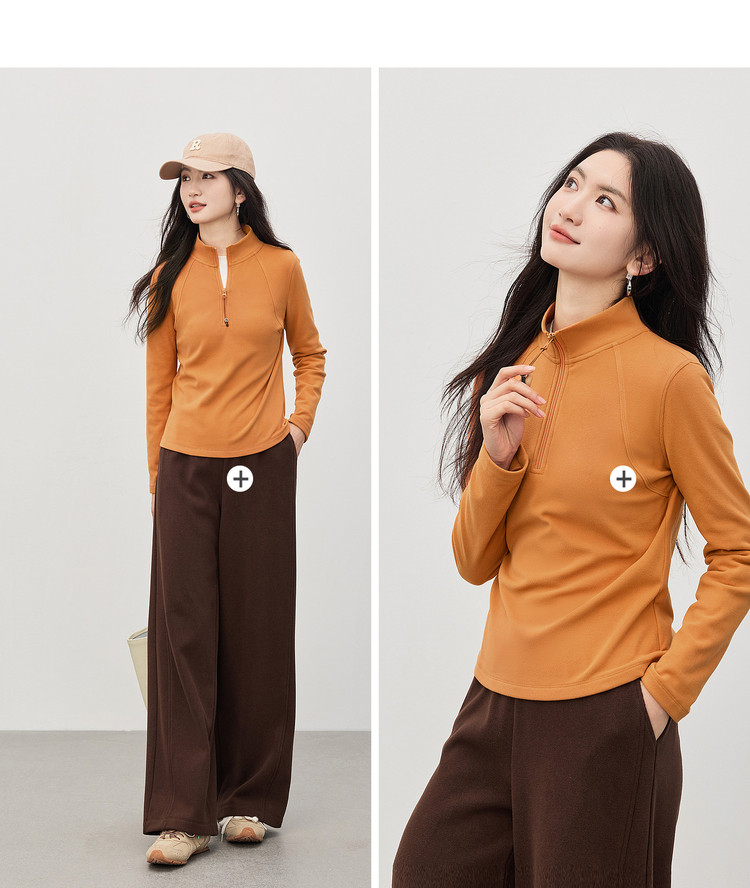 【1/21新品】熙世界橘色半拉链立领T恤打底衫女秋冬高级感户外风运动长袖上衣