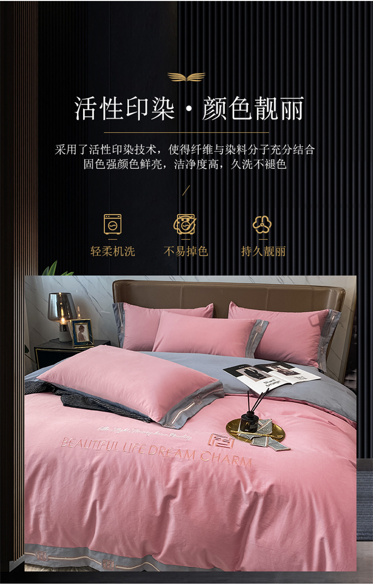 无印良品60s贡缎长绒棉全棉四件套-暖豆沙 床笠款