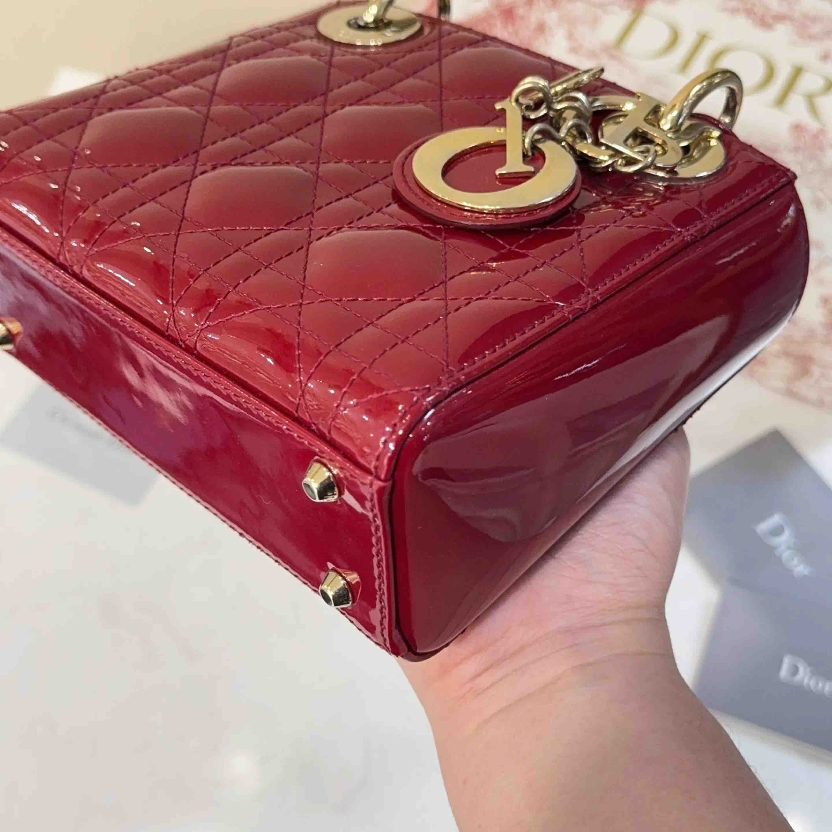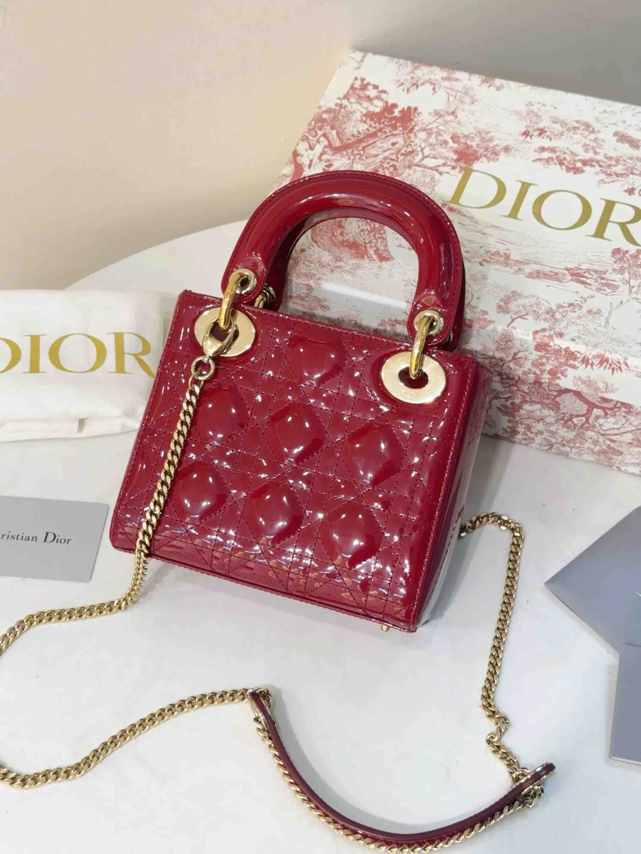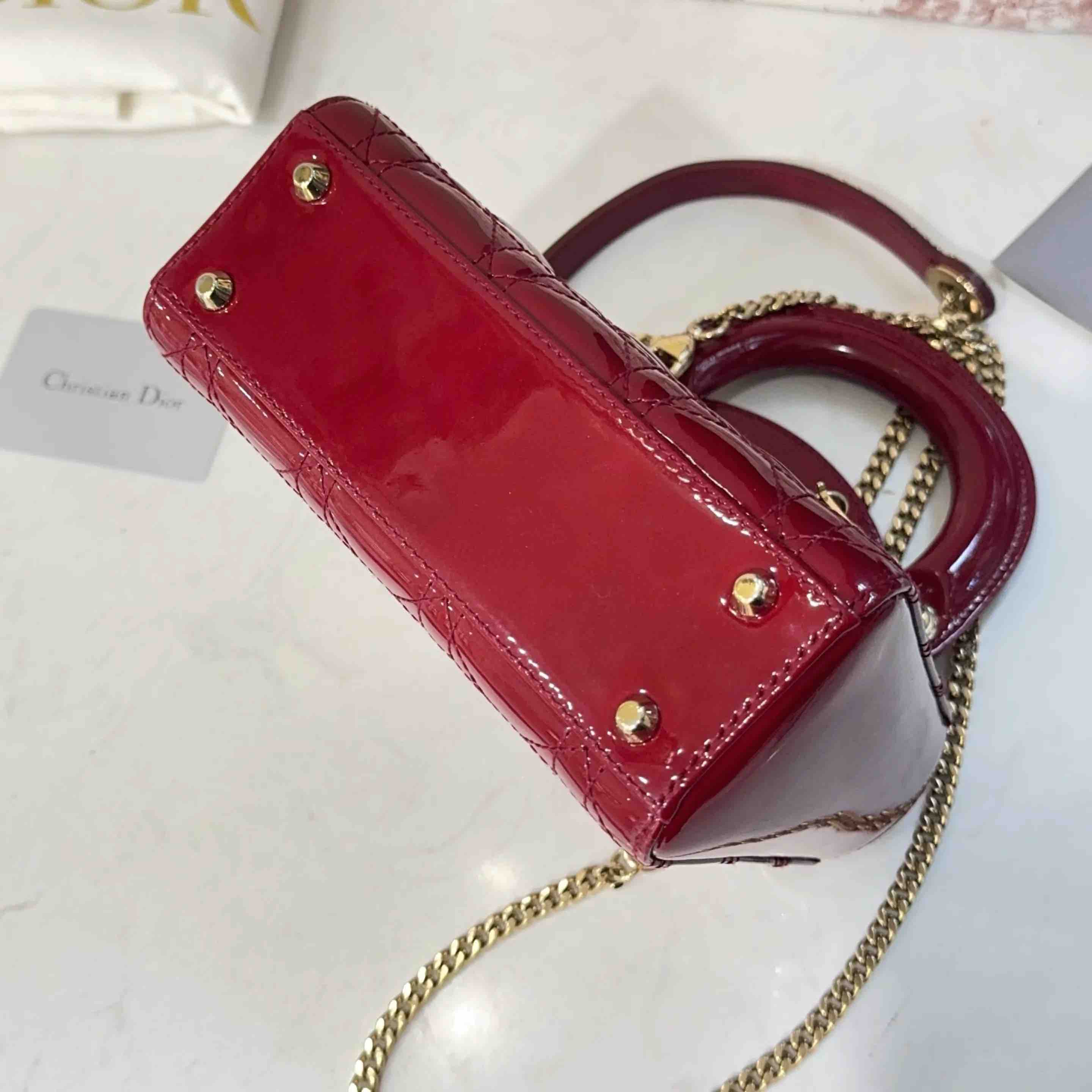 【商品详情】正品二手 Dior 三格 漆皮 红色 戴妃包🏹97新 17*13 配件:卡 说明书 防尘袋 盒子。红色寓意很好