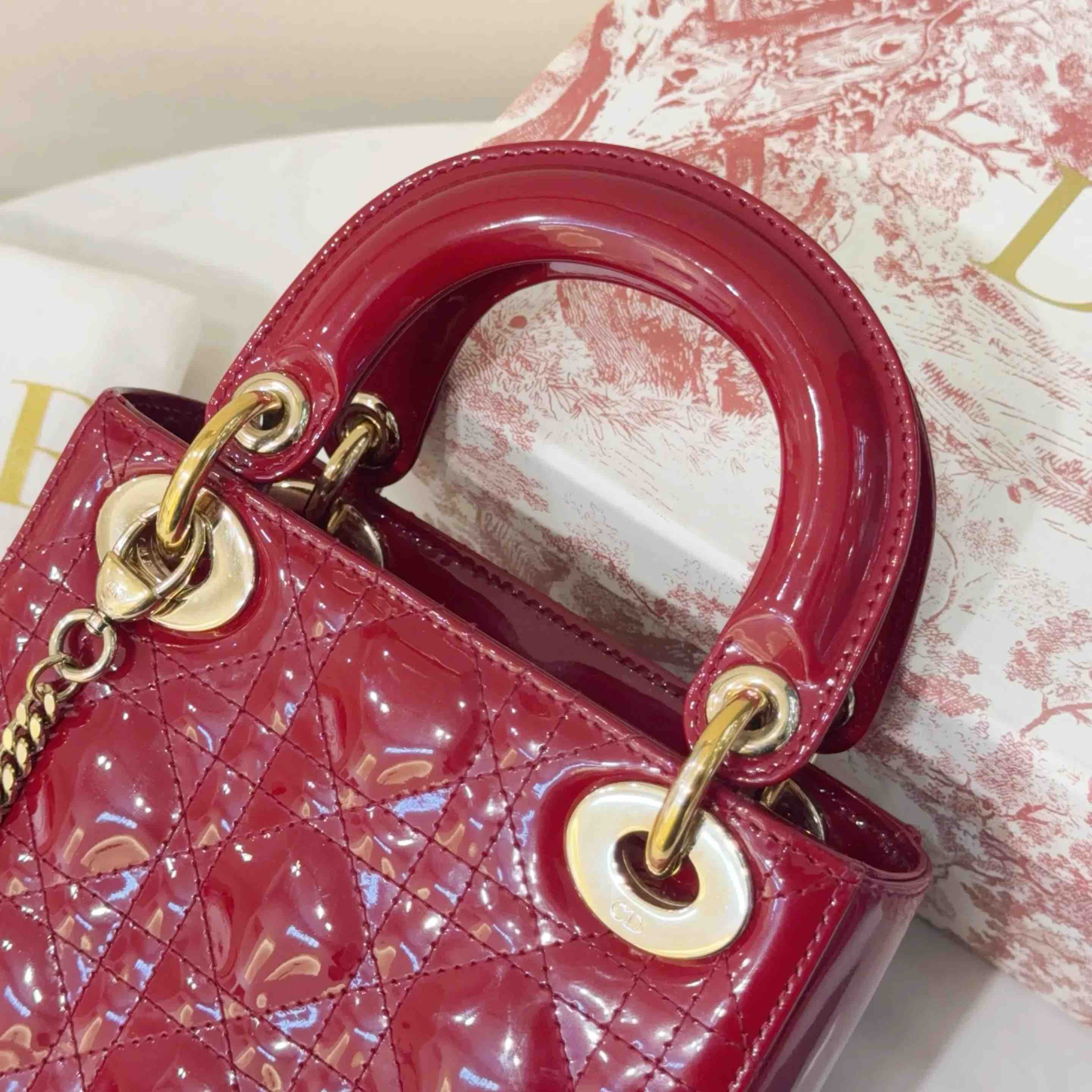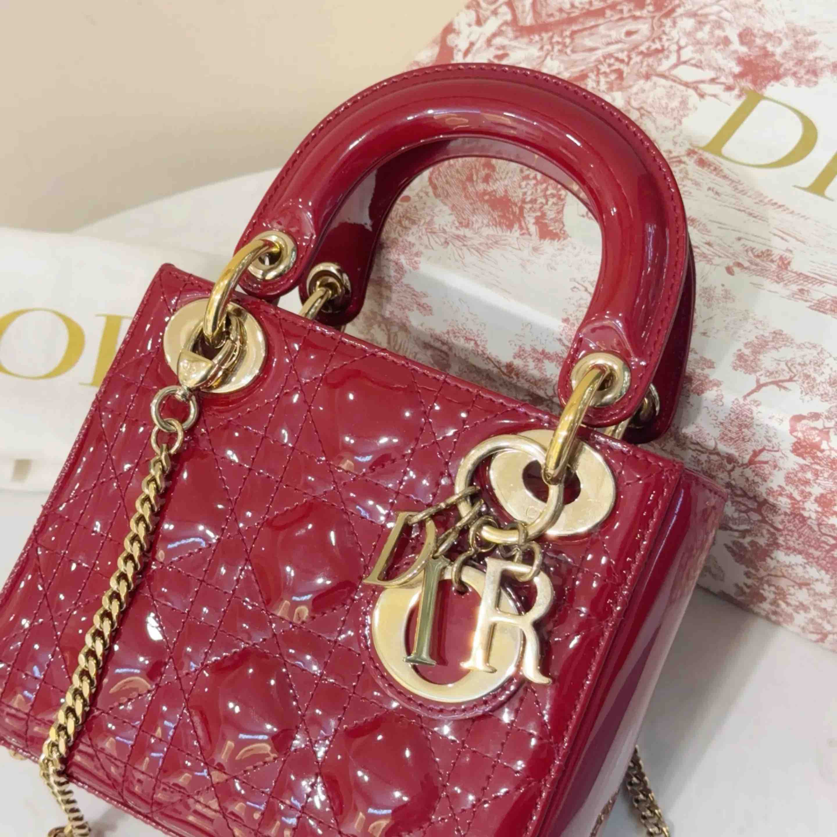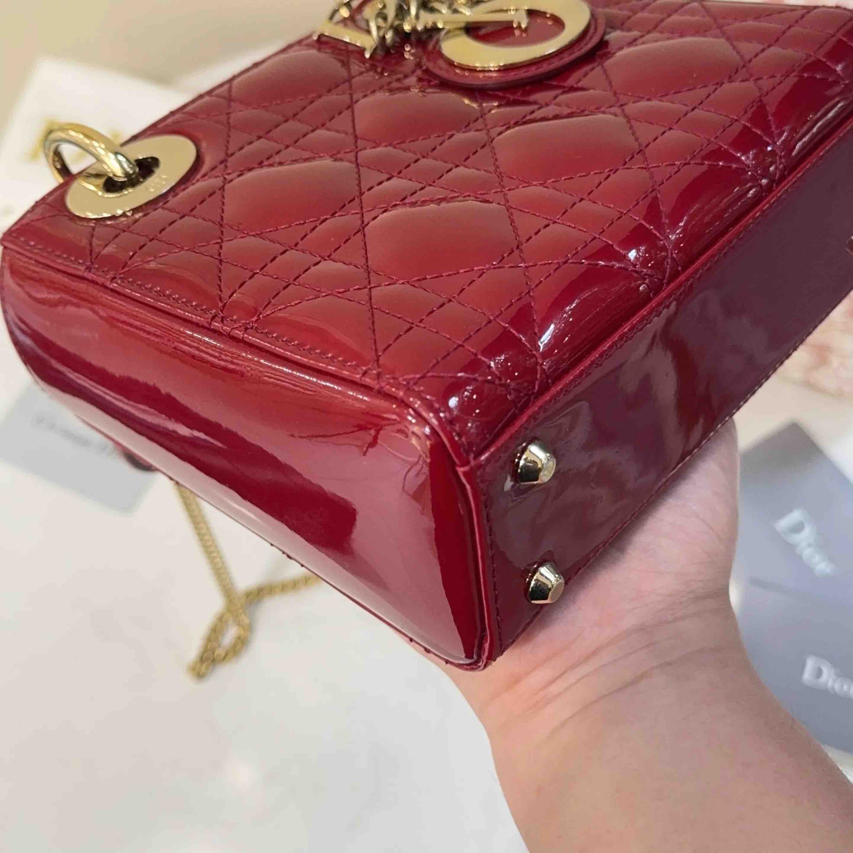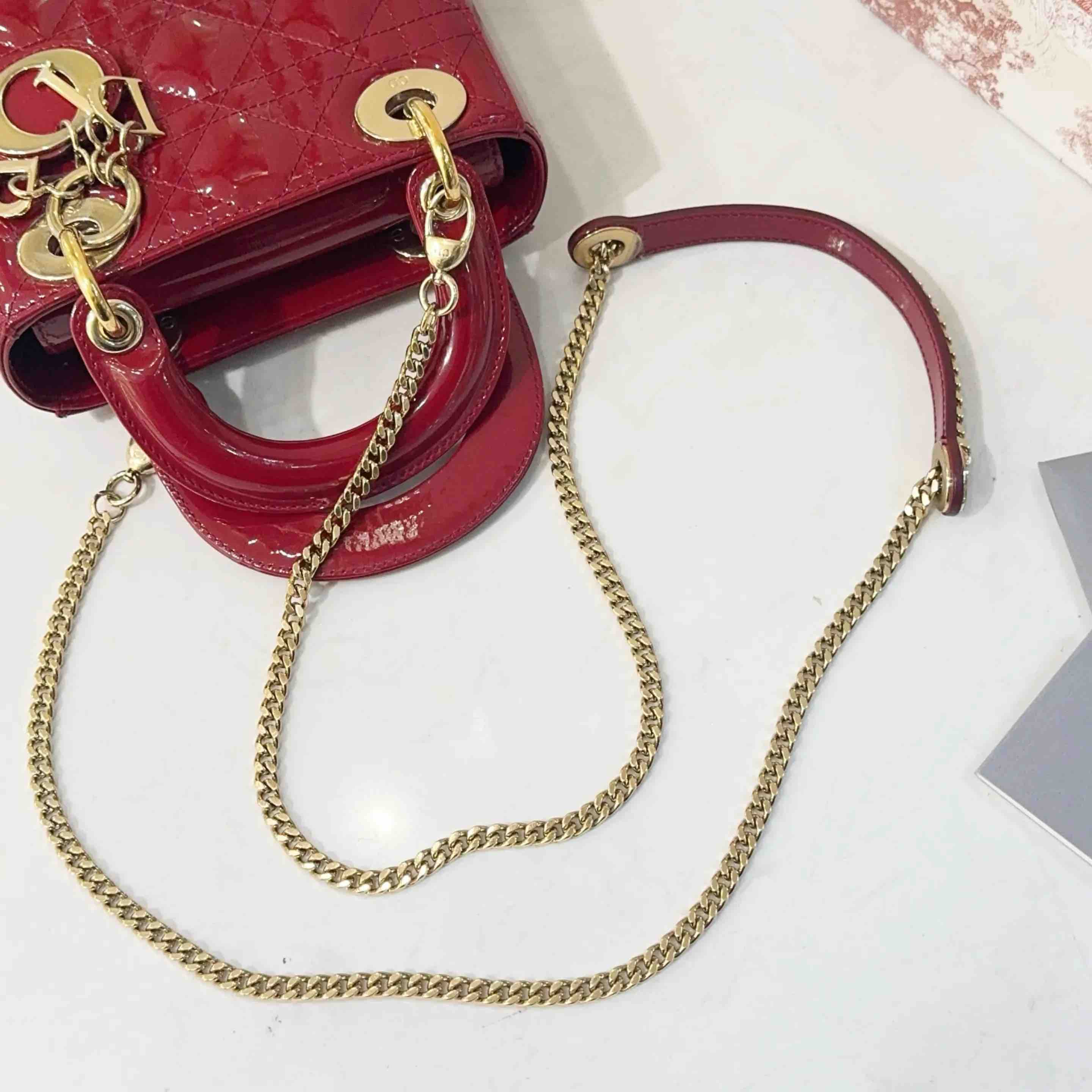 【商品详情】正品二手 Dior 三格 漆皮 红色 戴妃包🏹97新 17*13 配件:卡 说明书 防尘袋 盒子。红色寓意很好