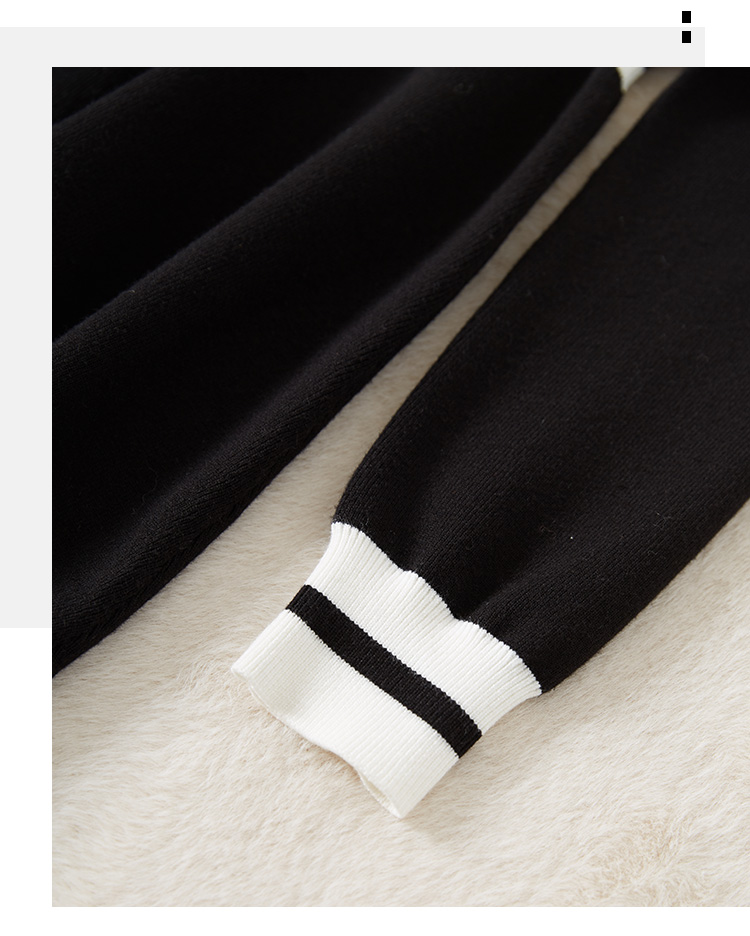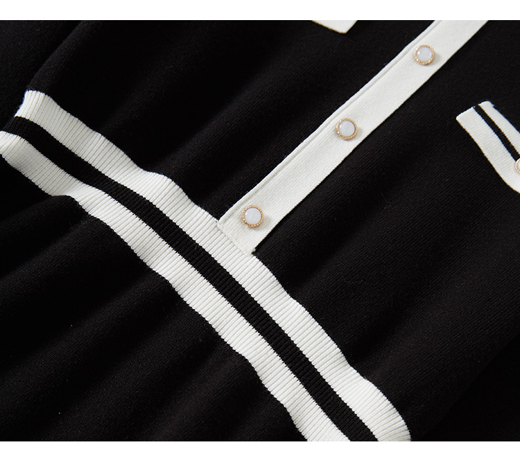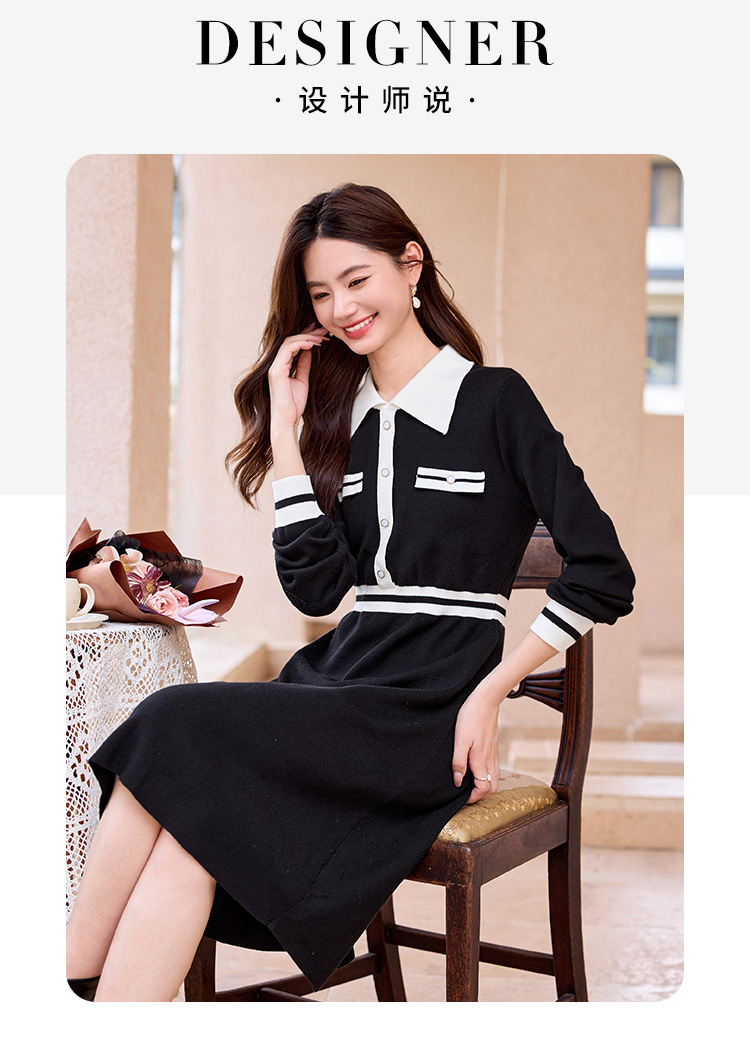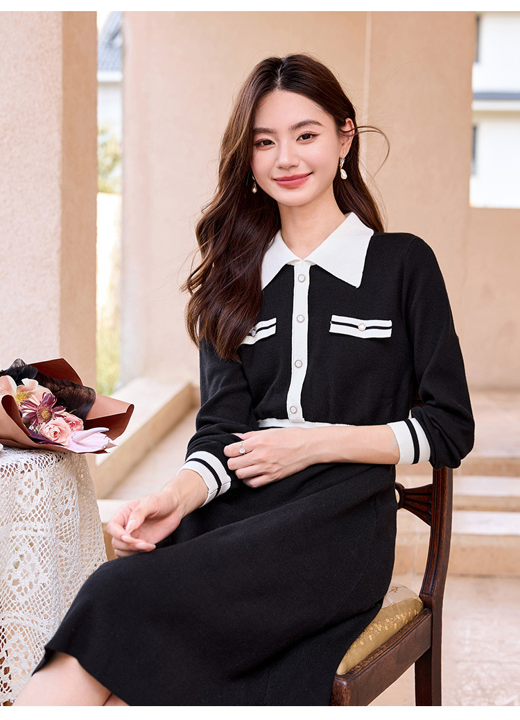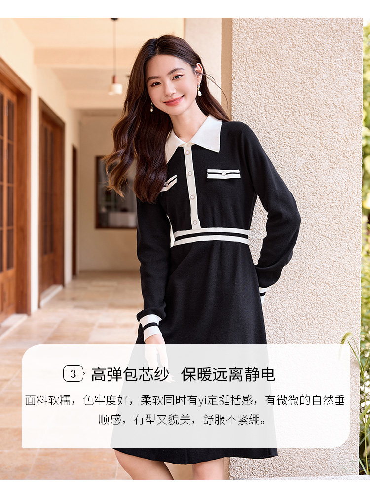 【专属特价】冬季配大衣内搭赫本风法式小黑裙撞色翻领打底针织连衣裙女