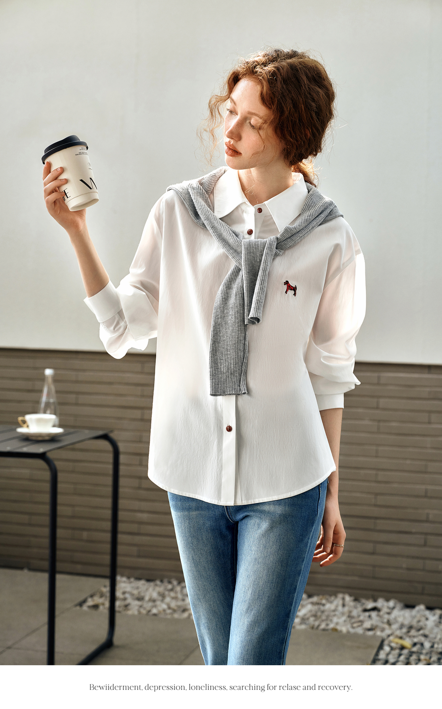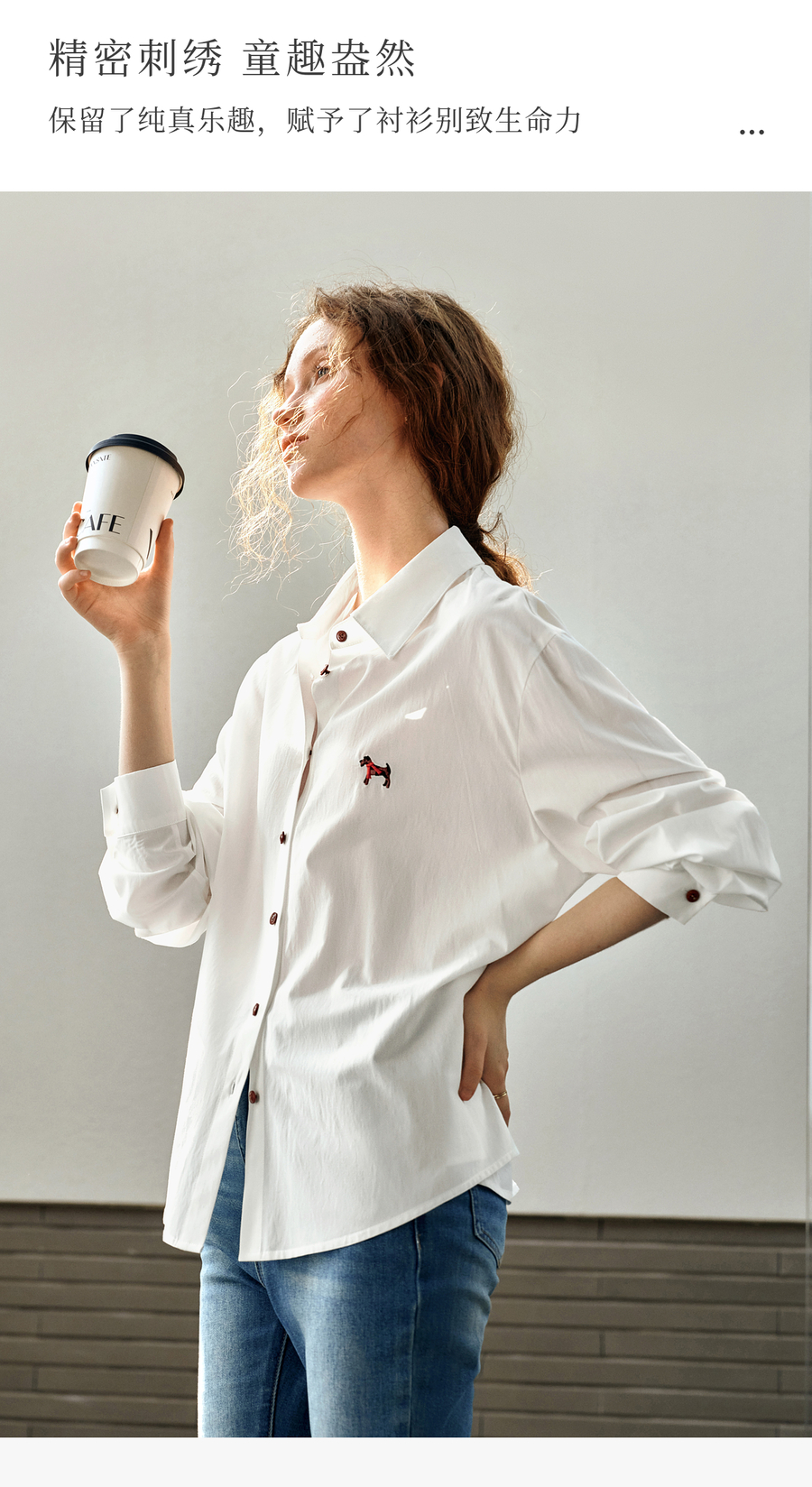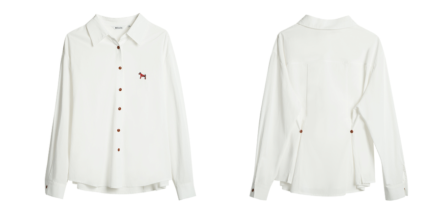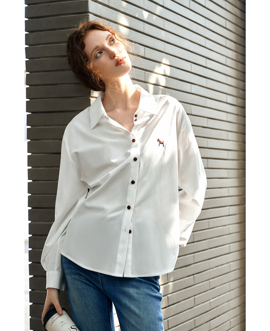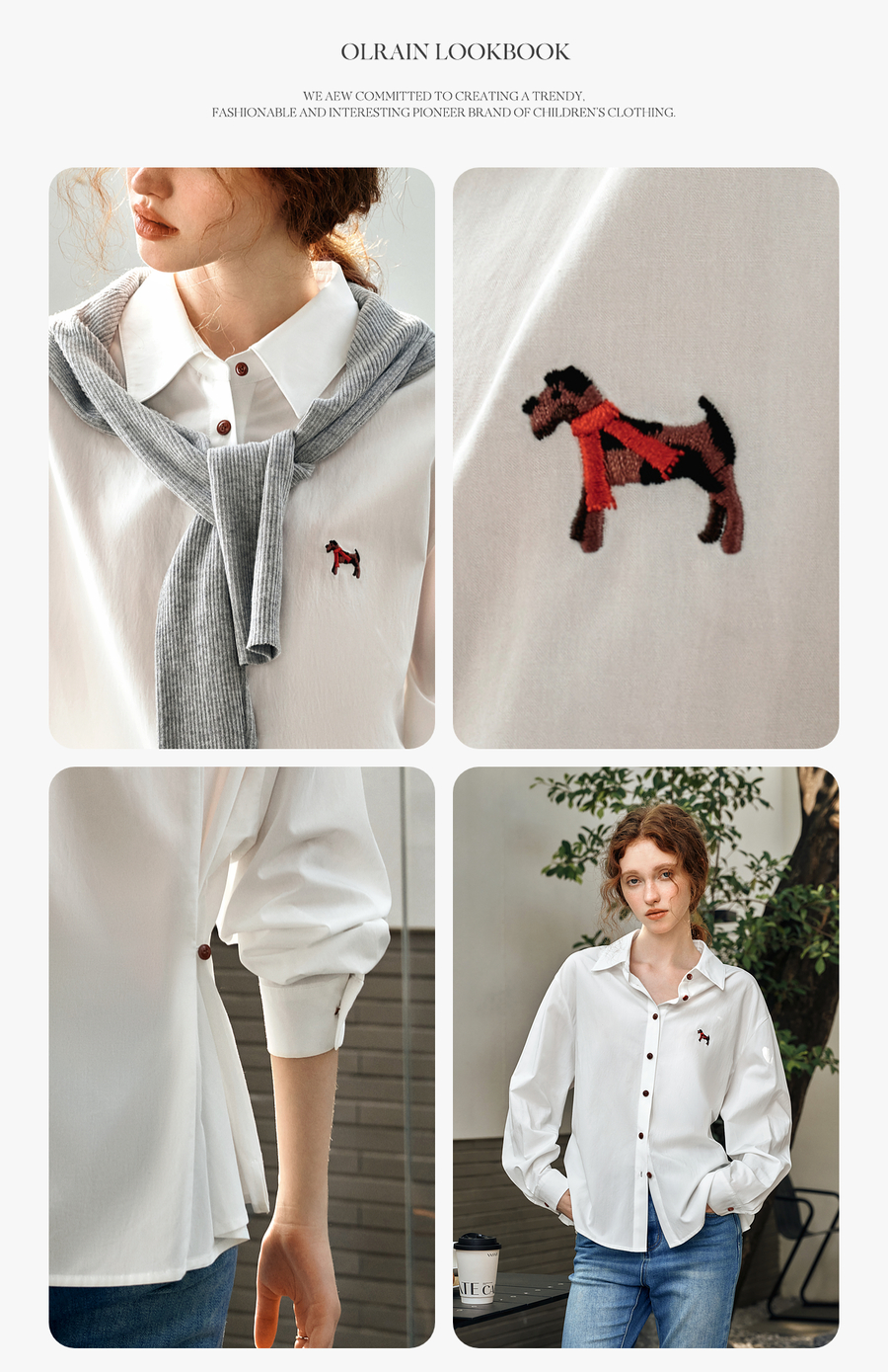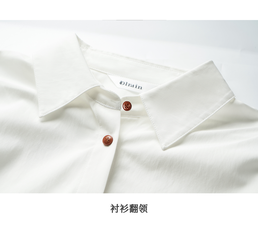 OLrain欧芮儿白色长袖衬衫女春季2025年新款休闲趣味绣花纽扣衬衣