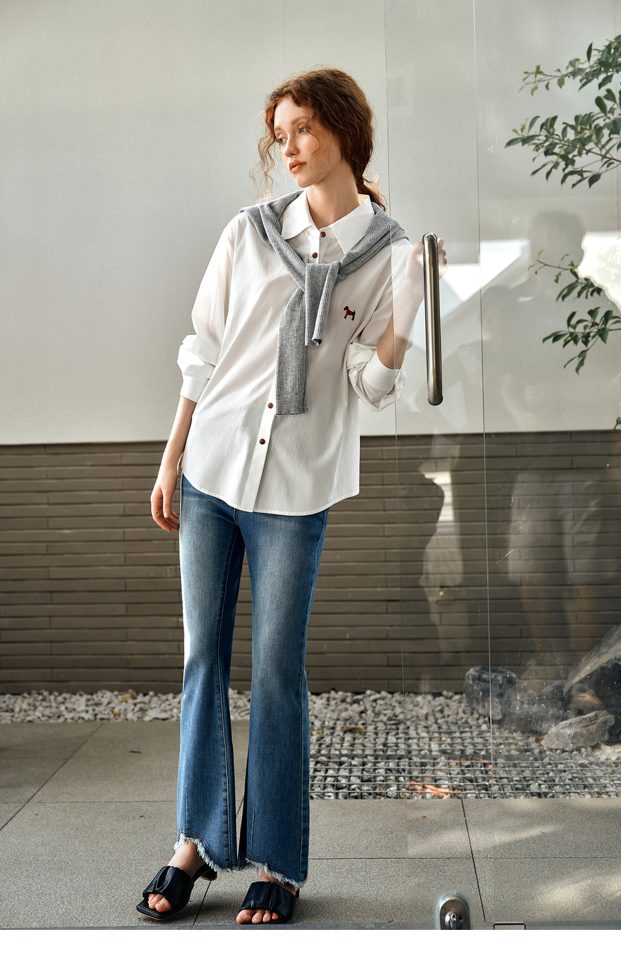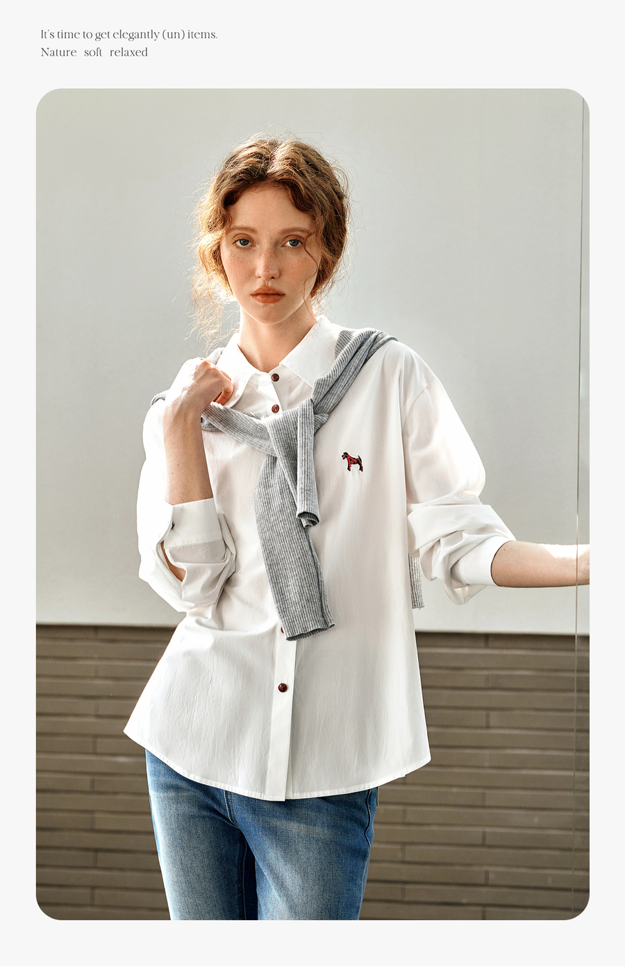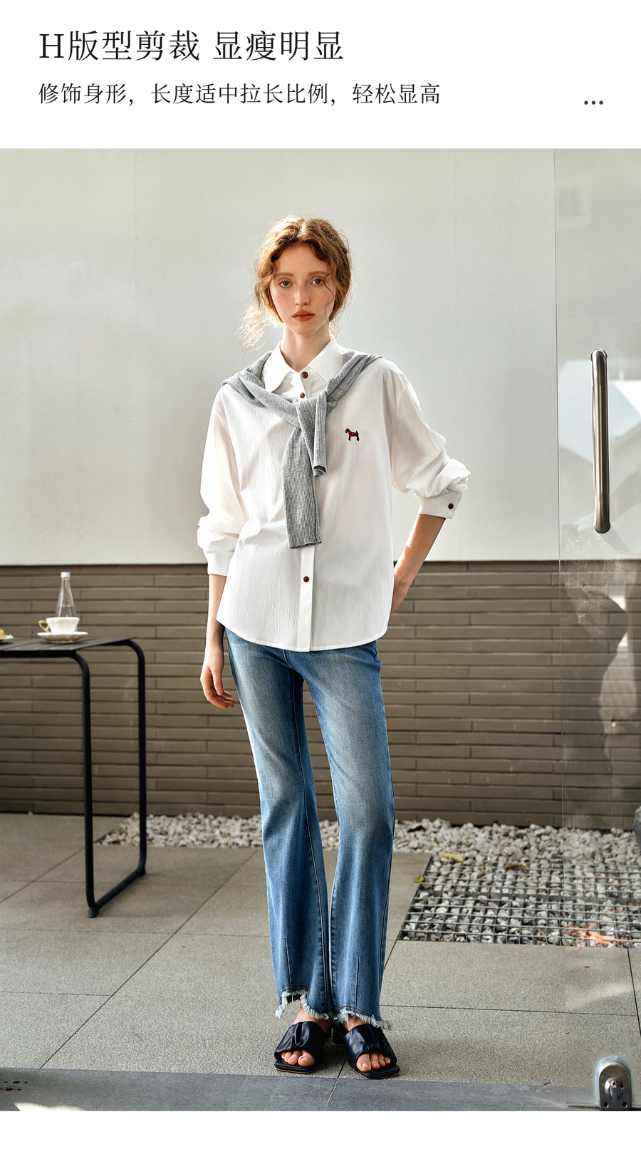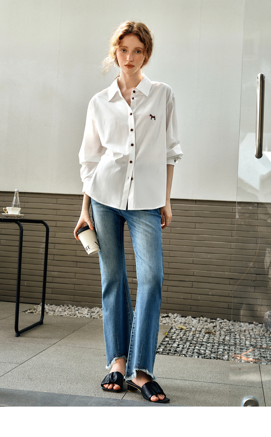 OLrain欧芮儿白色长袖衬衫女春季2025年新款休闲趣味绣花纽扣衬衣