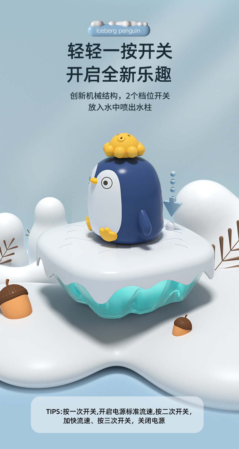 【赠电池 让宝宝爱上洗澡的戏水玩具】儿童洗澡电动喷水企鹅 婴儿浴室玩水游泳玩具mmzd