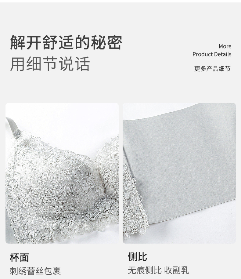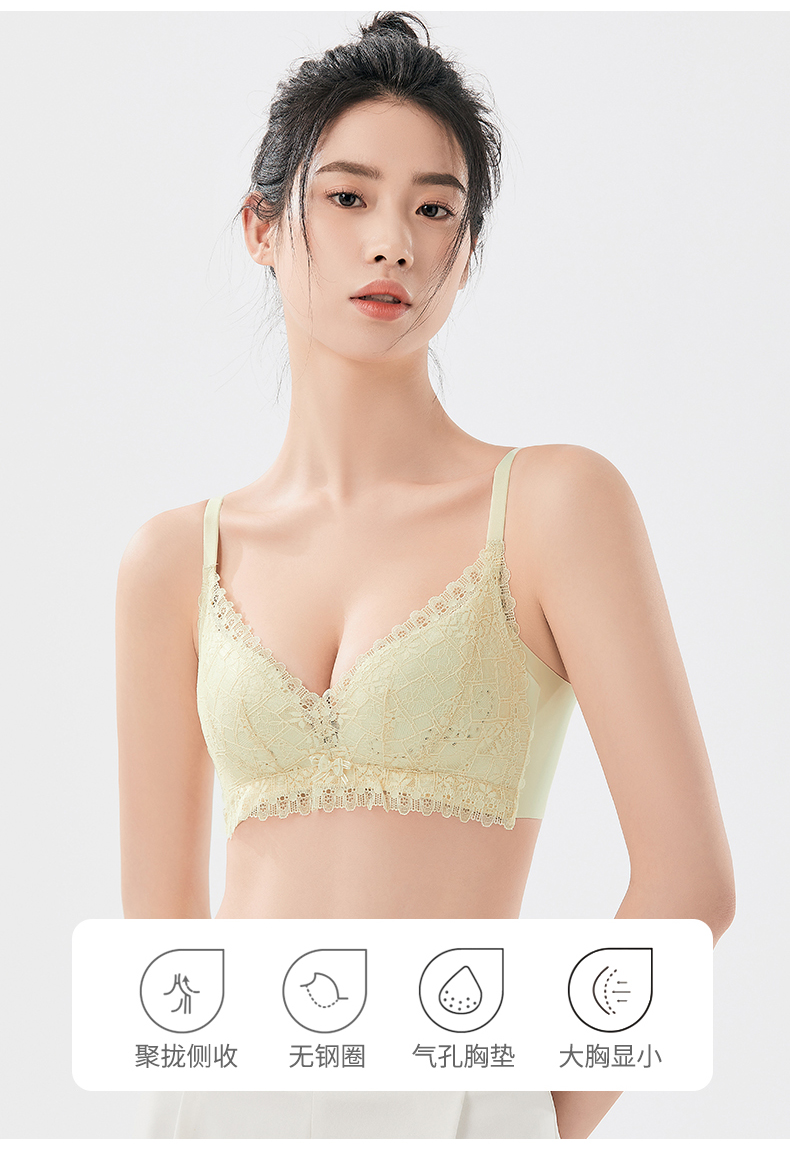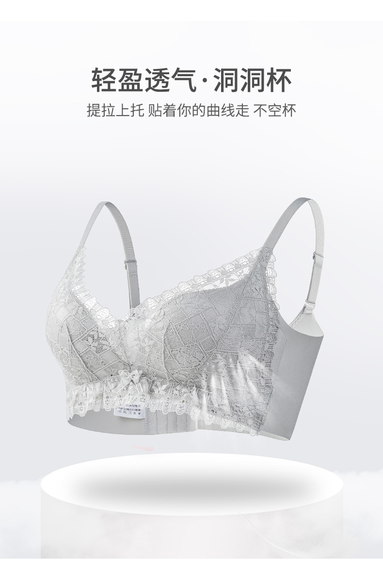 熳洁儿 呼吸洞洞杯性感蕾丝大胸显小文胸透气呼吸杯收副乳内衣23261503