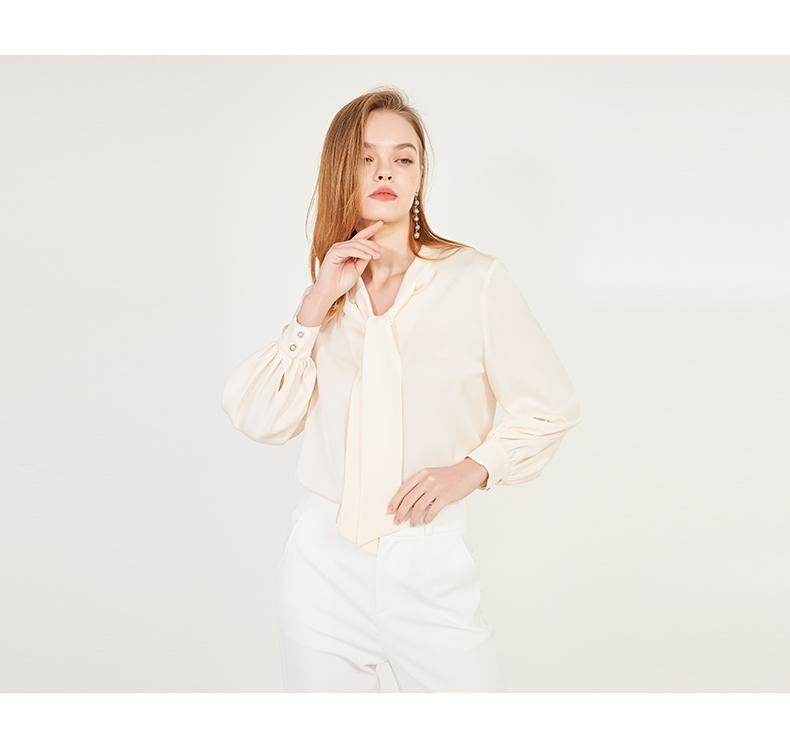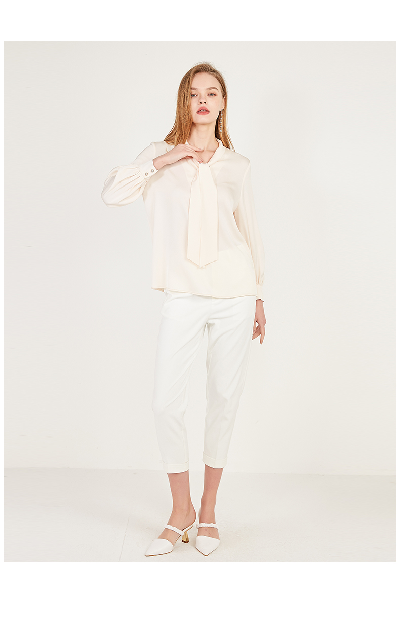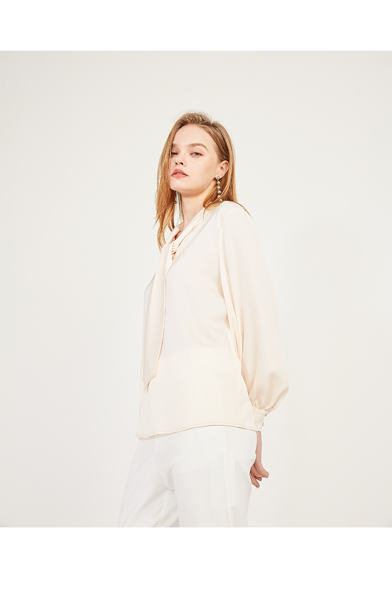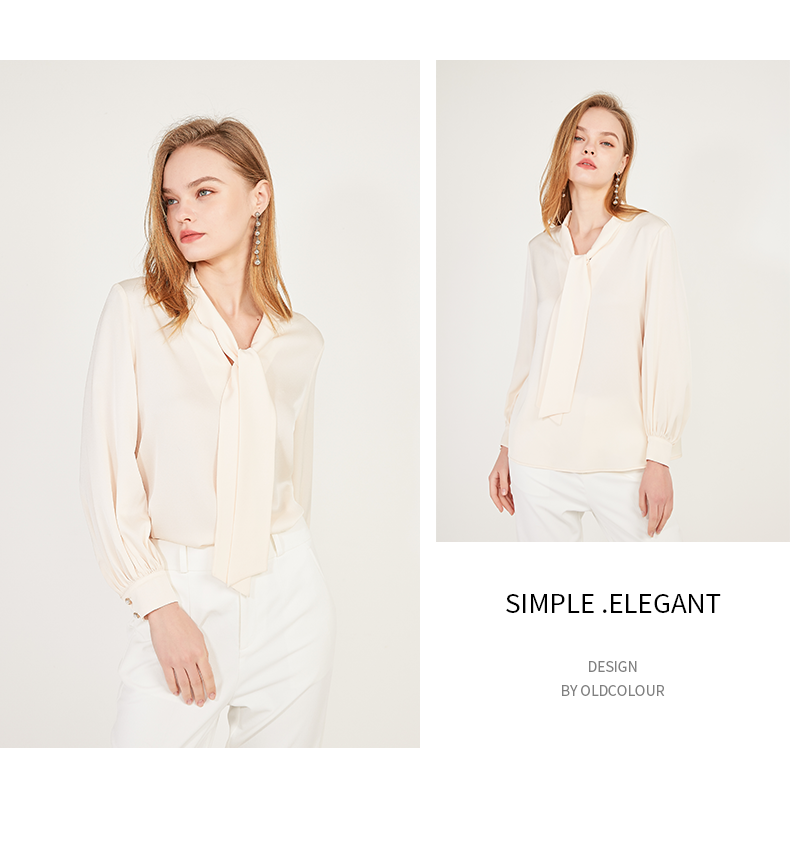 oldcolour春季系带领子休闲OL气质通勤长袖套头衬衫女N12013279