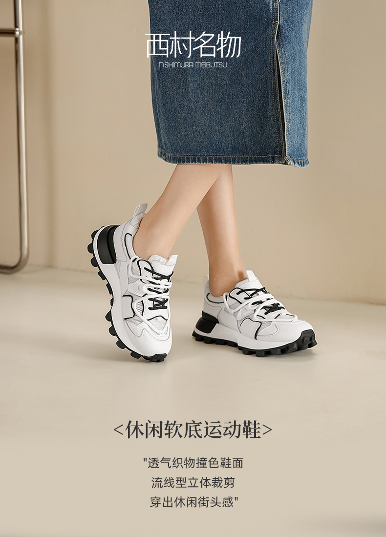 西村名物2023春夏新款松糕厚底运动鞋增高女轻便透气阿甘鞋33461
