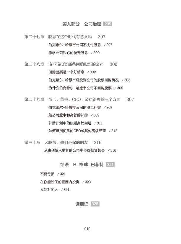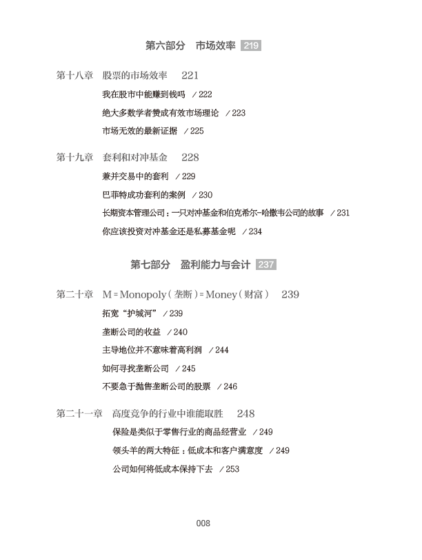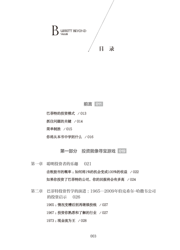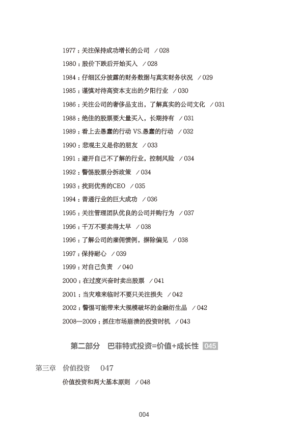 尽管本书的研究重点是巴菲特的投资模式,但与此同时,作者也介绍了其他投资者和学者们的一些观点,这有助于帮助读者更好地构建适合自己的投资策略。