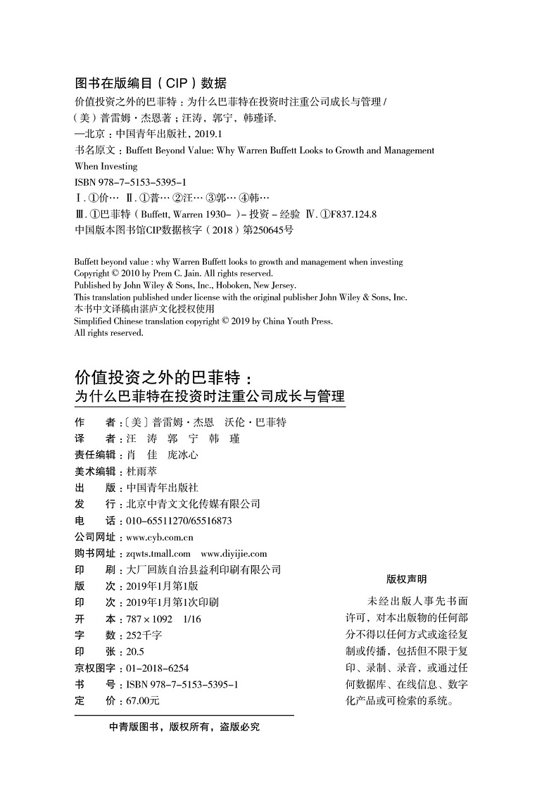 (仓发) 价值投资之外的巴菲特:为什么巴菲特在投资时注重公司成长与管理/中国青年出版社/[美]普雷姆·杰恩,沃伦·巴菲特/9787515353951