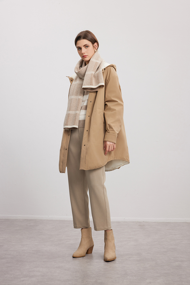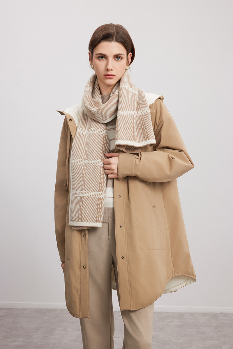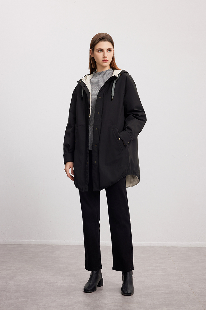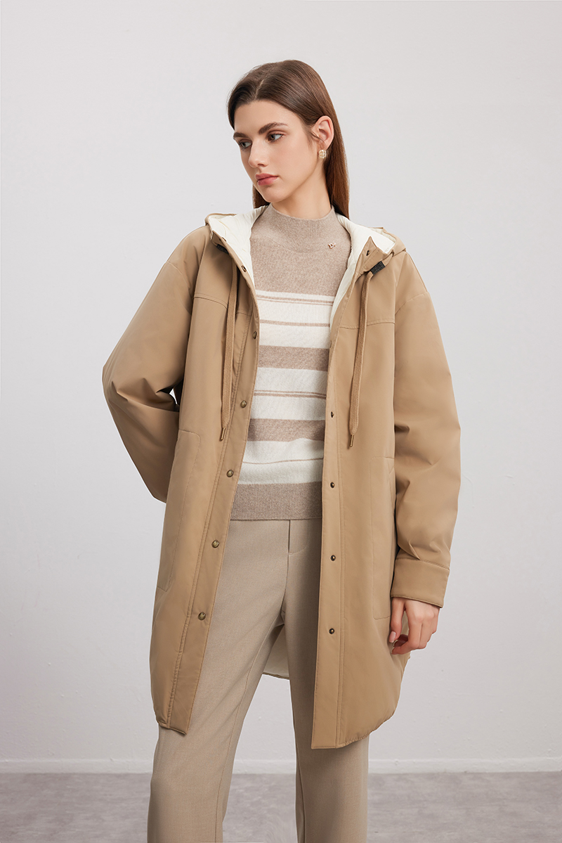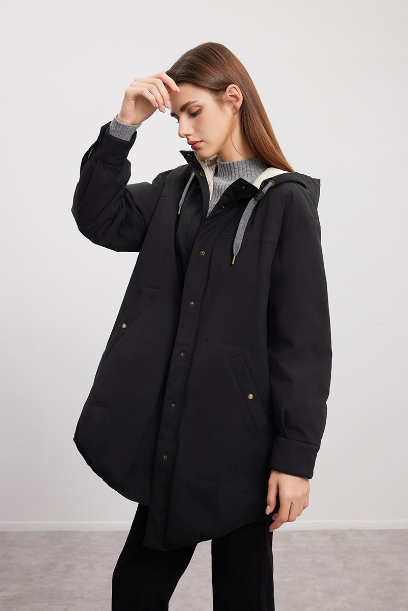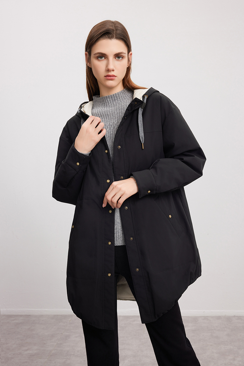 【双面拼色连帽羽绒服】24年秋冬女士新品中长款90白鹅绒保暖外套