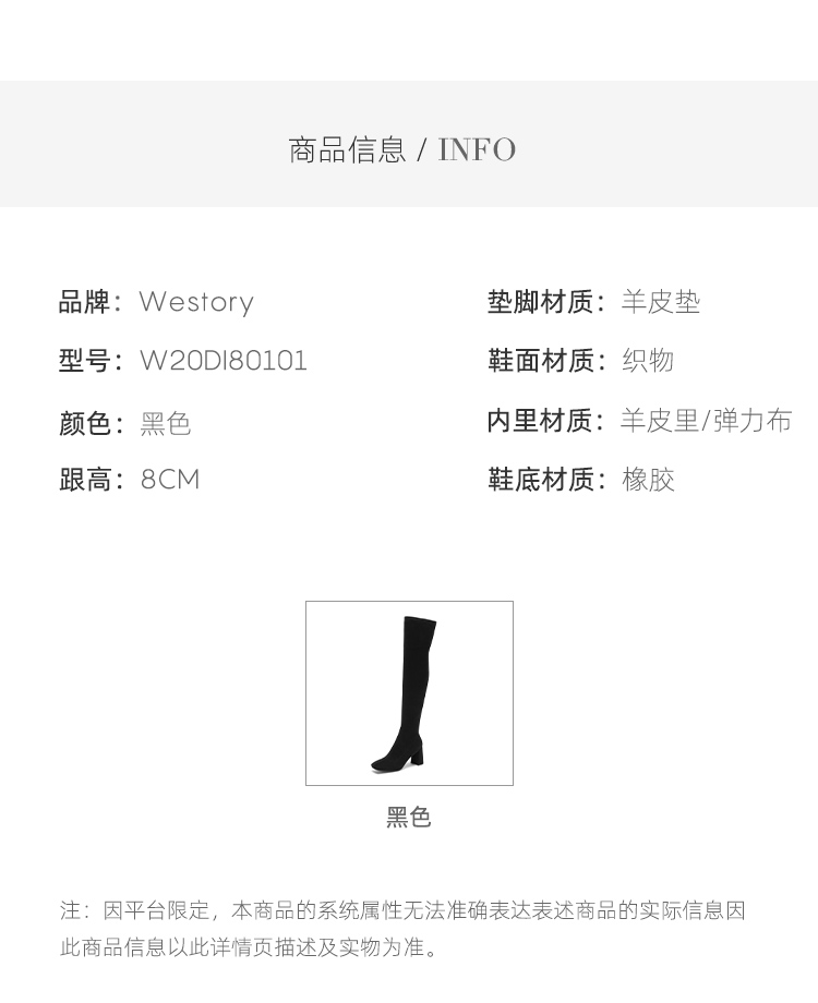 westory2020冬季新款真皮弹力休闲舒适高筒长靴女W20DI80101