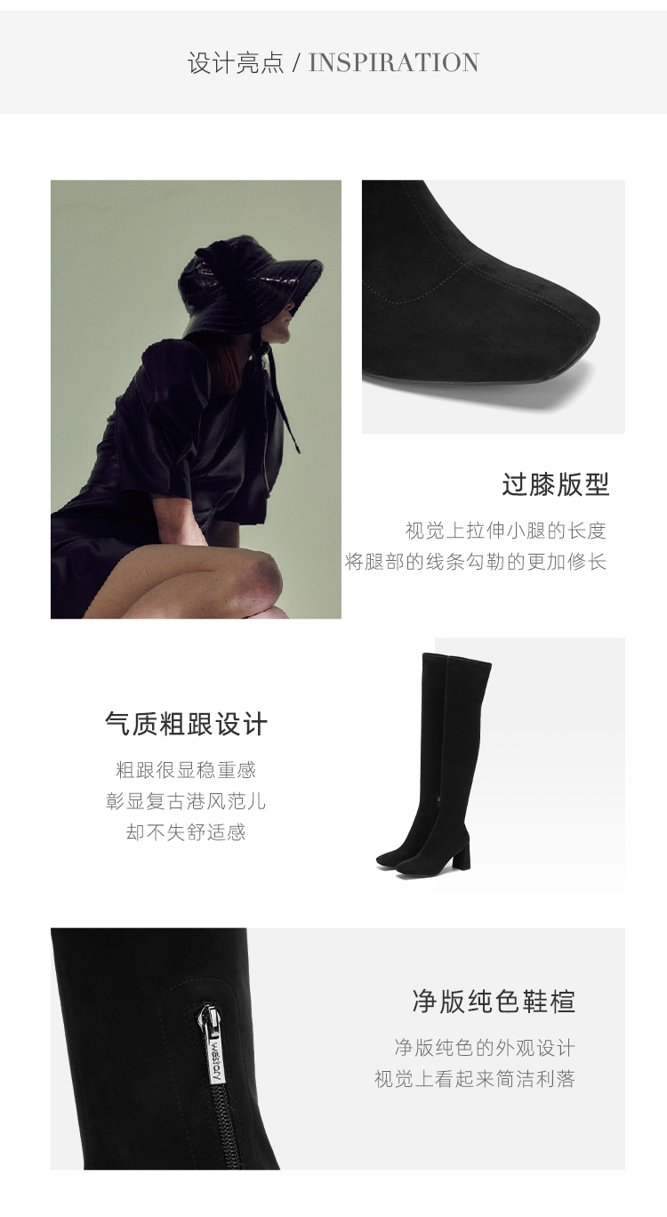 westory2018年新款冬靴绒面短靴时尚粗跟女靴子W284S81111