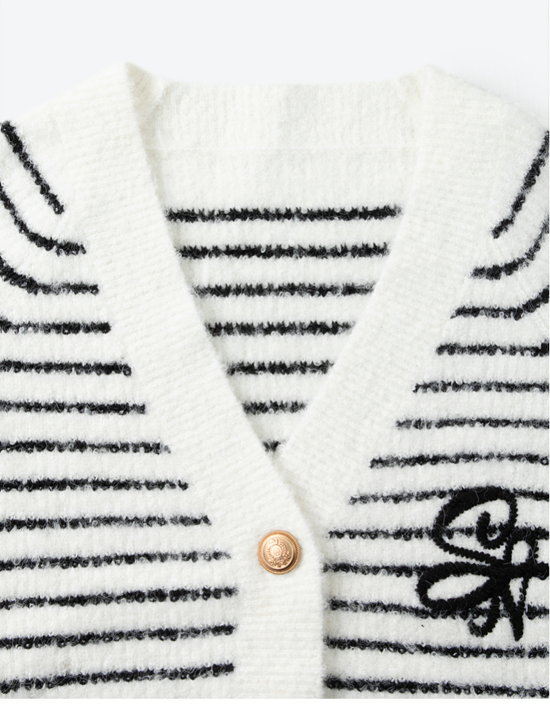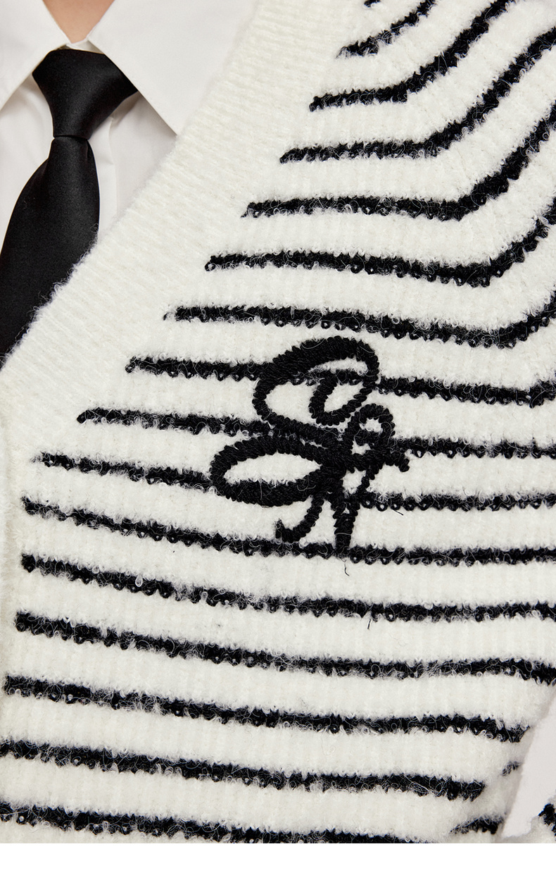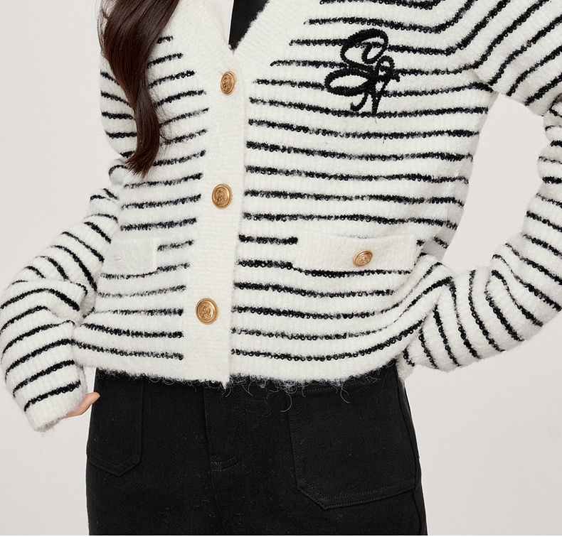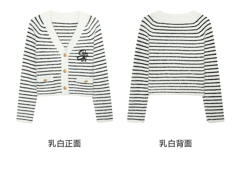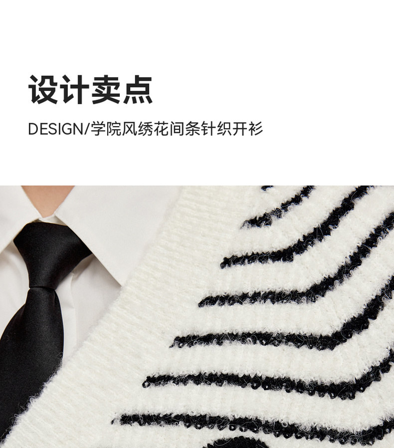 【严选】【圈圈纱】诗凡黎心动毛衣学院风间条针织开衫24秋新款高智外套女7F8330171
