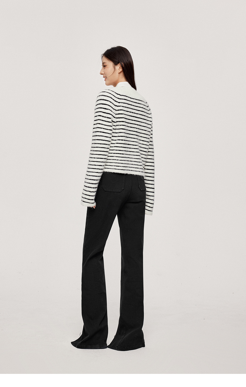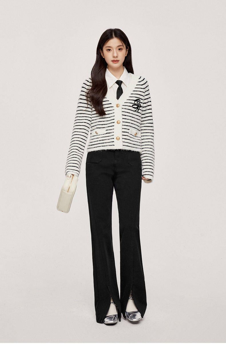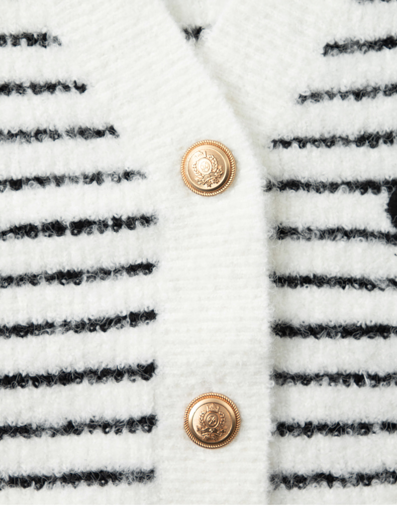 【严选】【圈圈纱】诗凡黎心动毛衣学院风间条针织开衫24秋新款高智外套女7F8330171