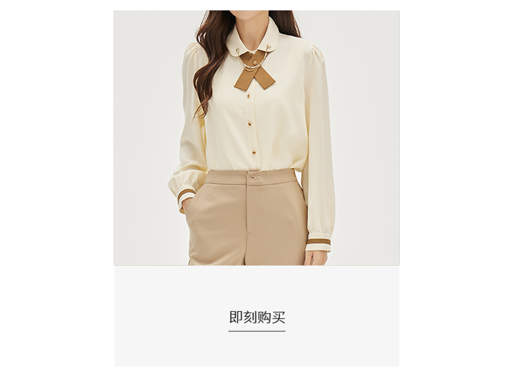 oldcolour秋季新款通勤时尚纯色花边袖长袖衬衫女P310107A1