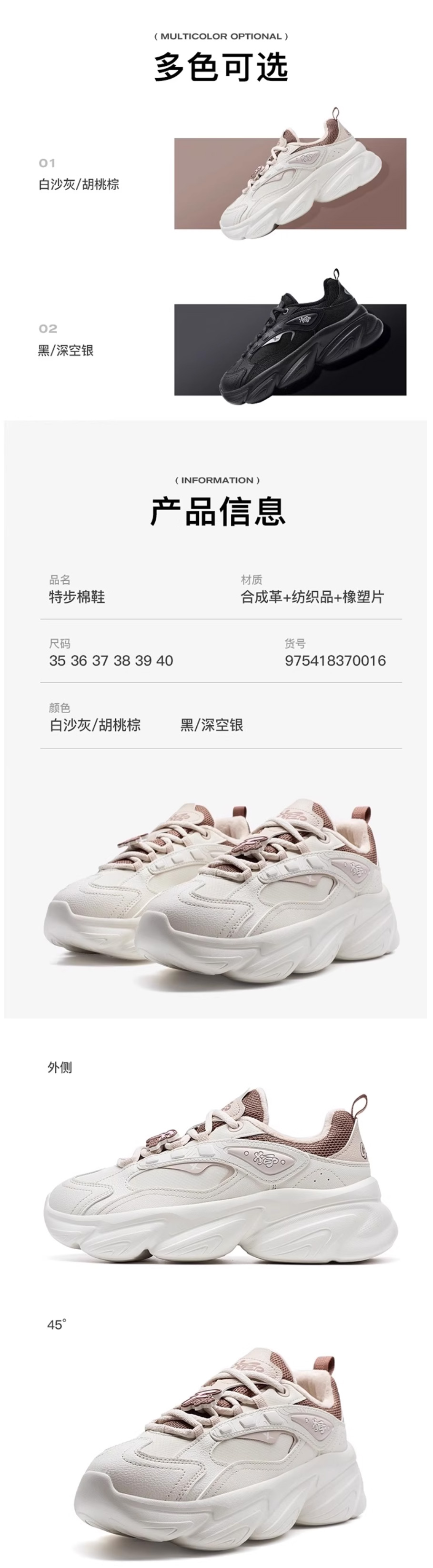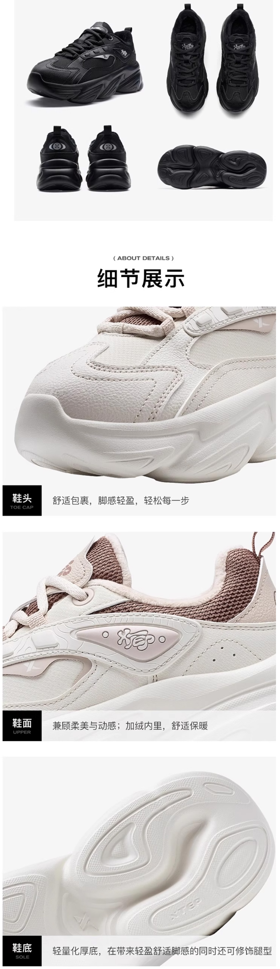 特步蛋卷鞋女鞋棉鞋冬季加绒保暖二棉休闲鞋运动鞋子975418370016