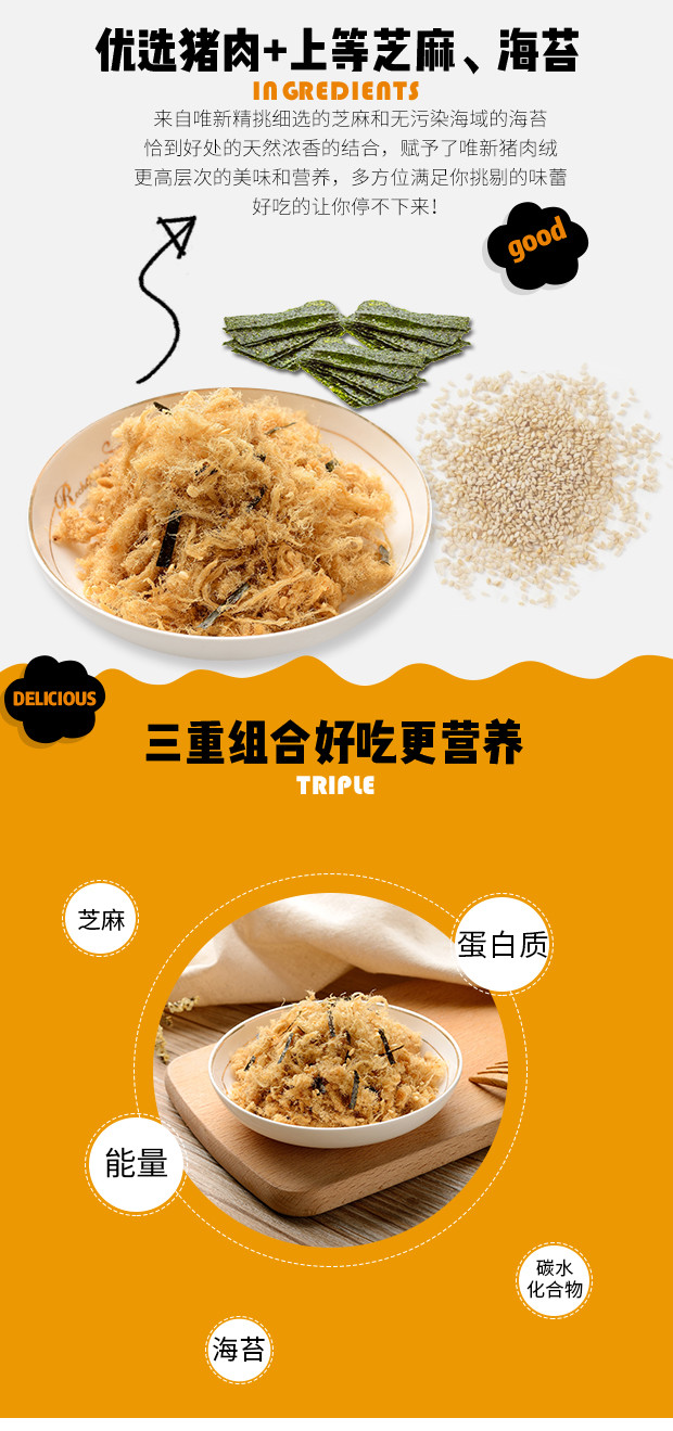 【休闲食品 肉酥】美奇唯新 115g海苔芝麻肉酥