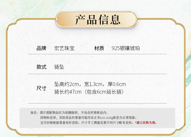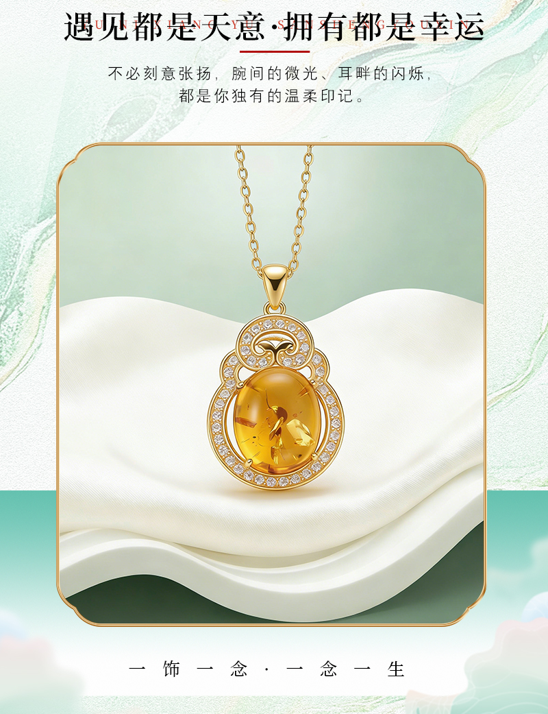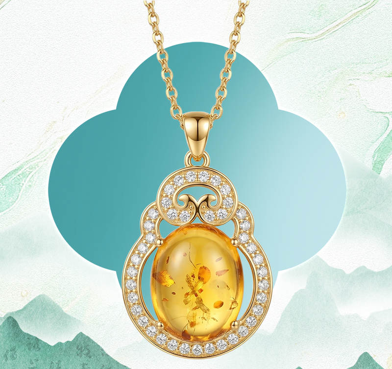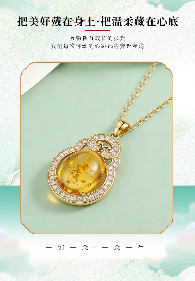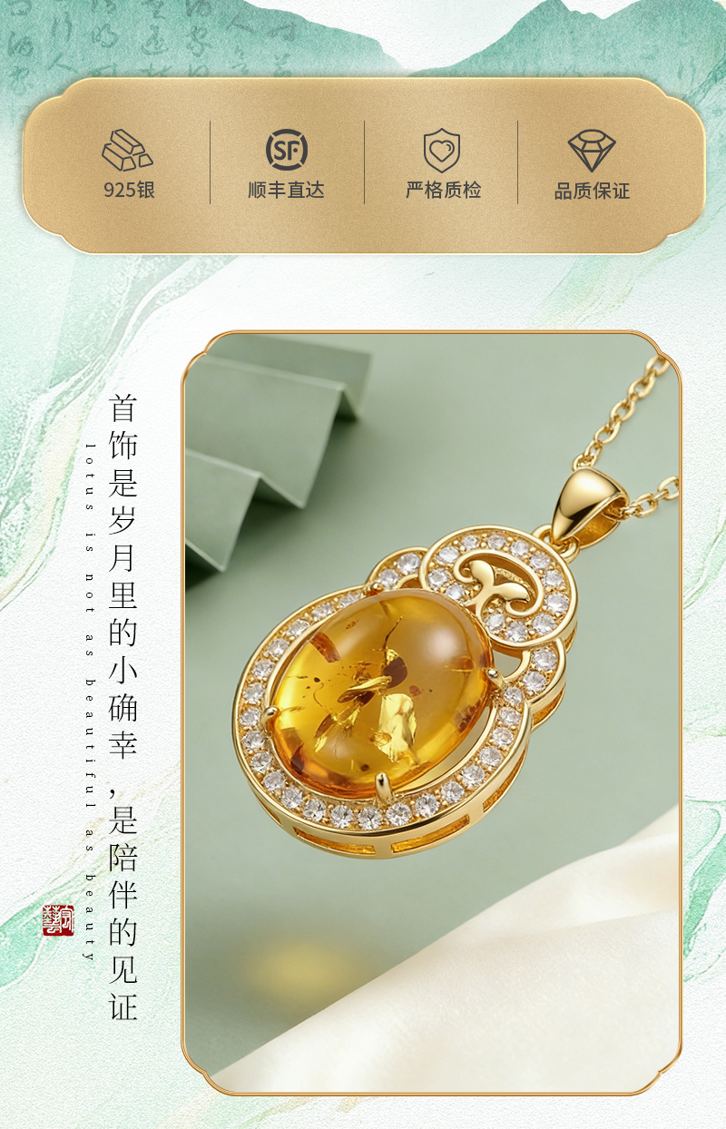 【宏艺珠宝】金珀凝香·银s925项链镶嵌琥珀