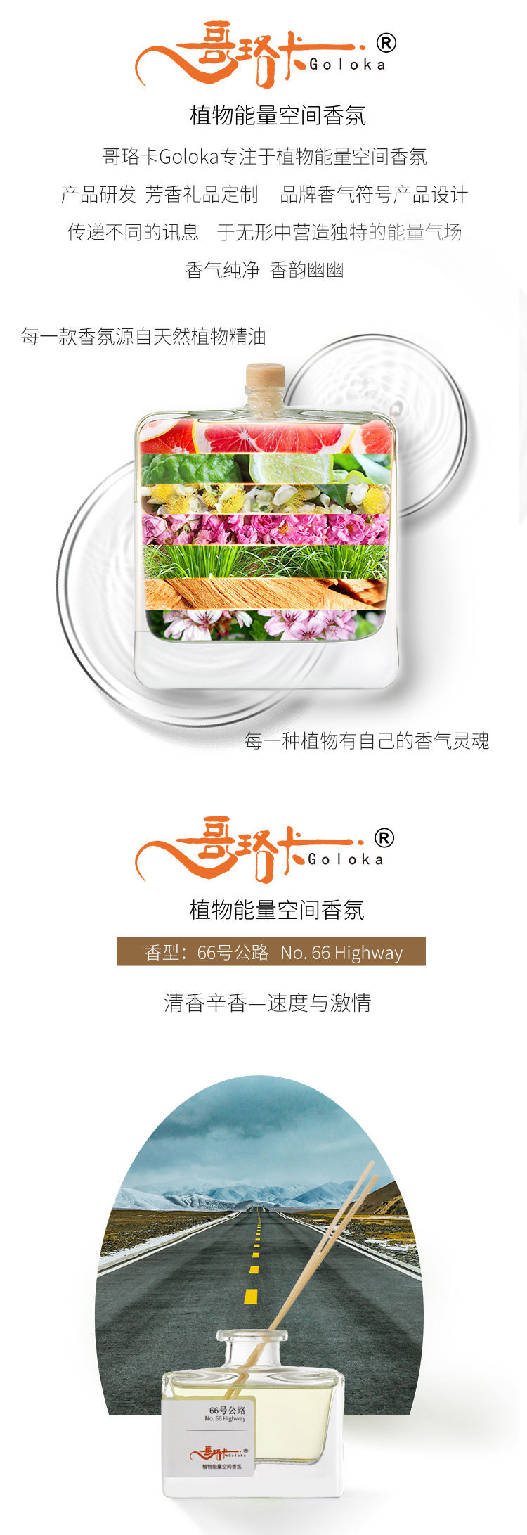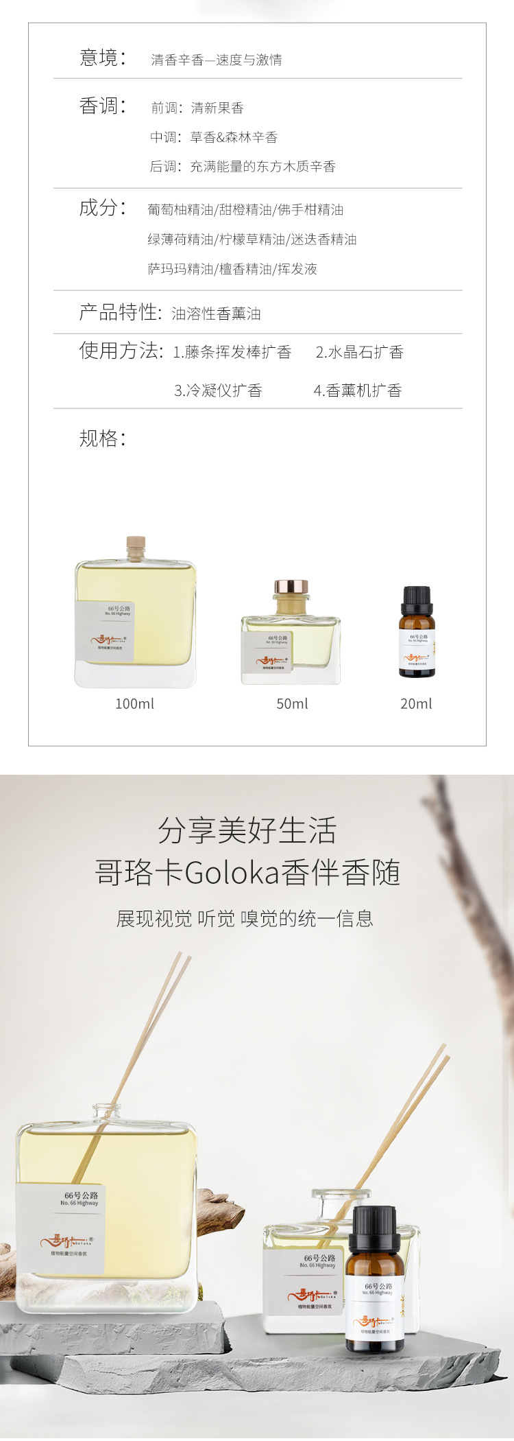 66号公路香薰油无火香薰精油哥珞卡植物香氛家用室内车载酒店香薰
