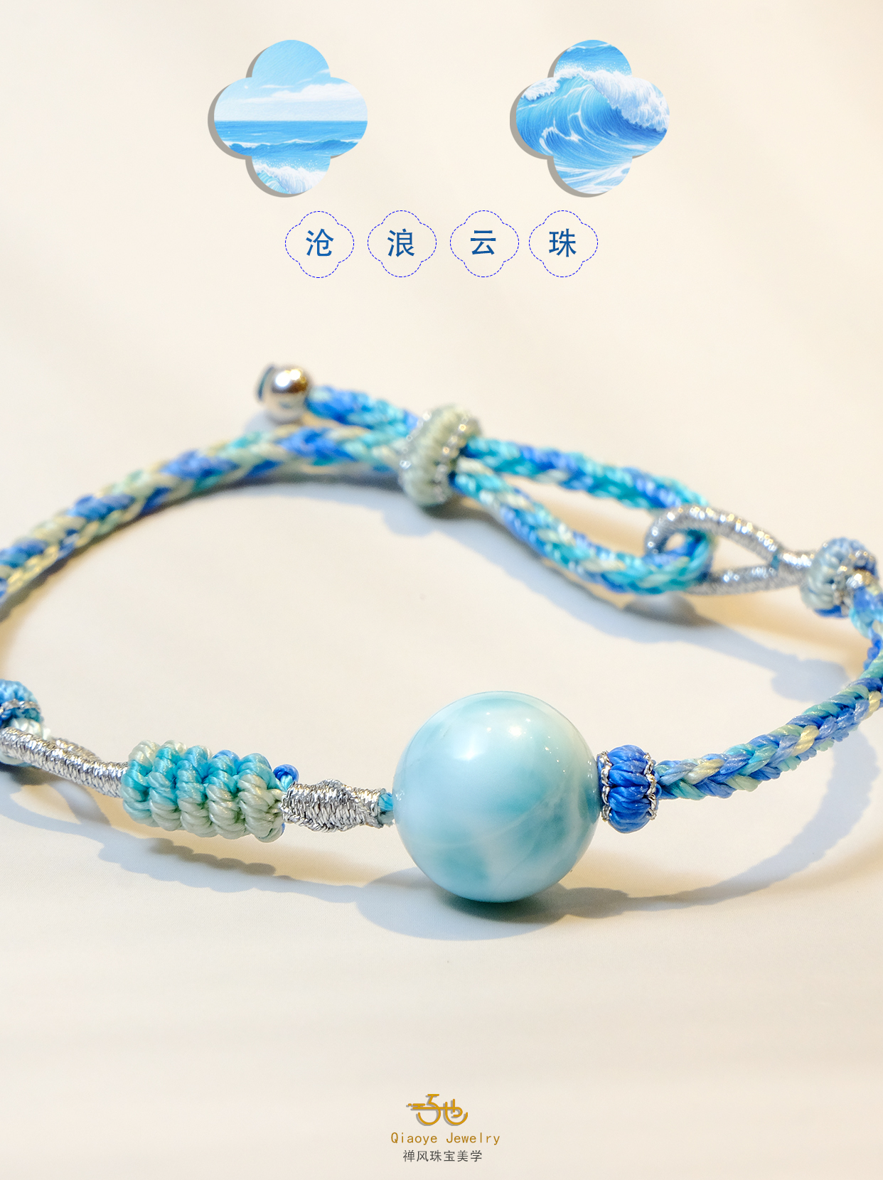 巧也【沧浪云珠】海纹石纯手工编织手绳定制款国风手珠禅意风手珠手链