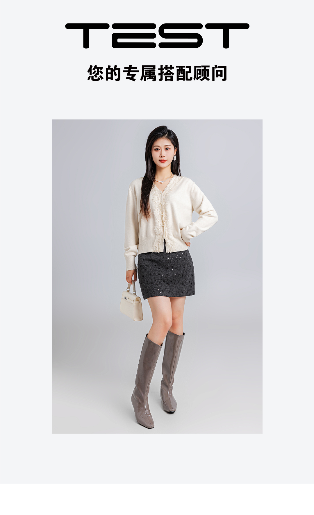 春上新蕾丝拼接V领秋冬新款软糯亲肤毛衣1261017 商品图2