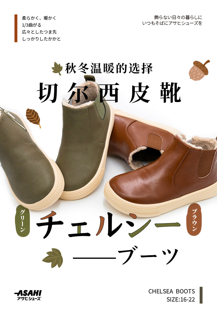 【特价抢购 非质量问题不退换】asahi朝日儿童秋冬中帮经典切尔西皮靴
