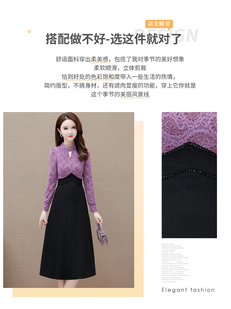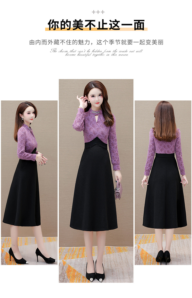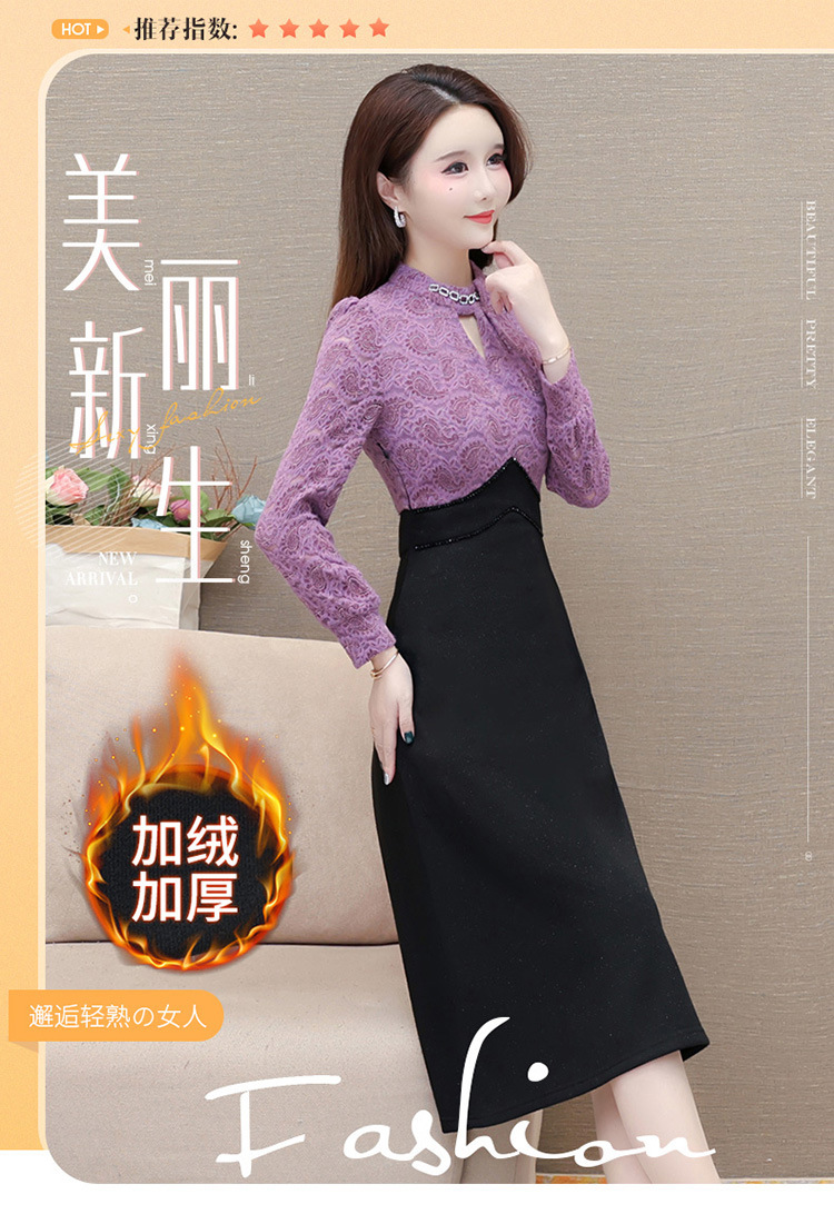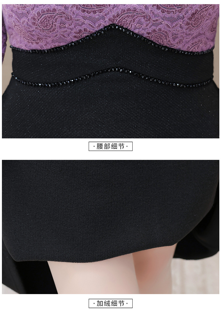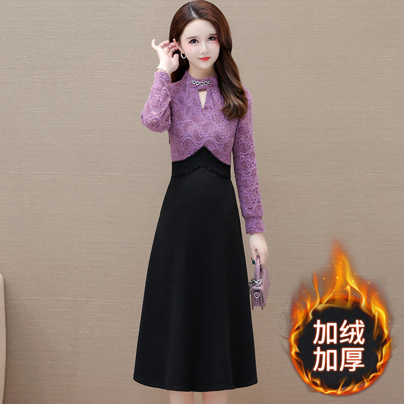 时尚气质加绒保暖连衣裙,拼结蕾丝网纱裙A字裙QYM-HL-23F070-Y