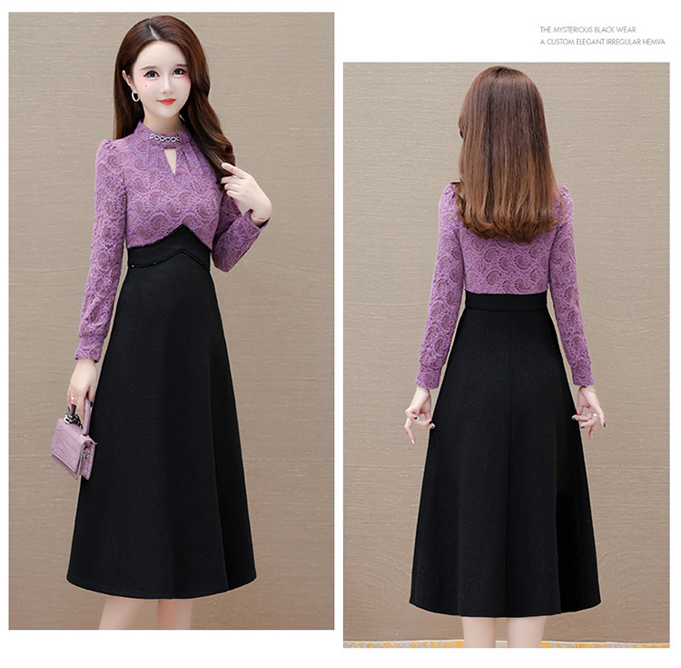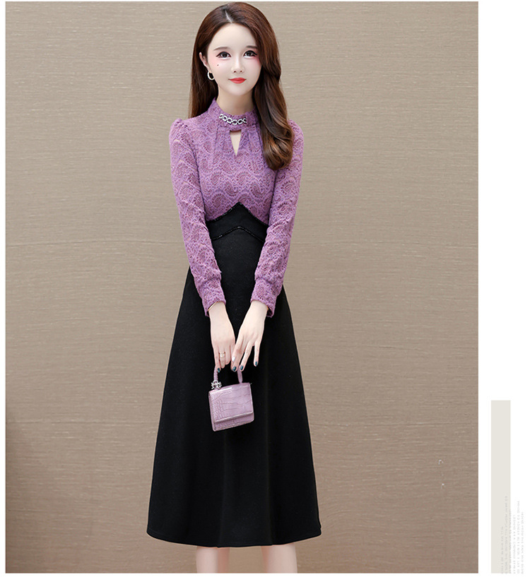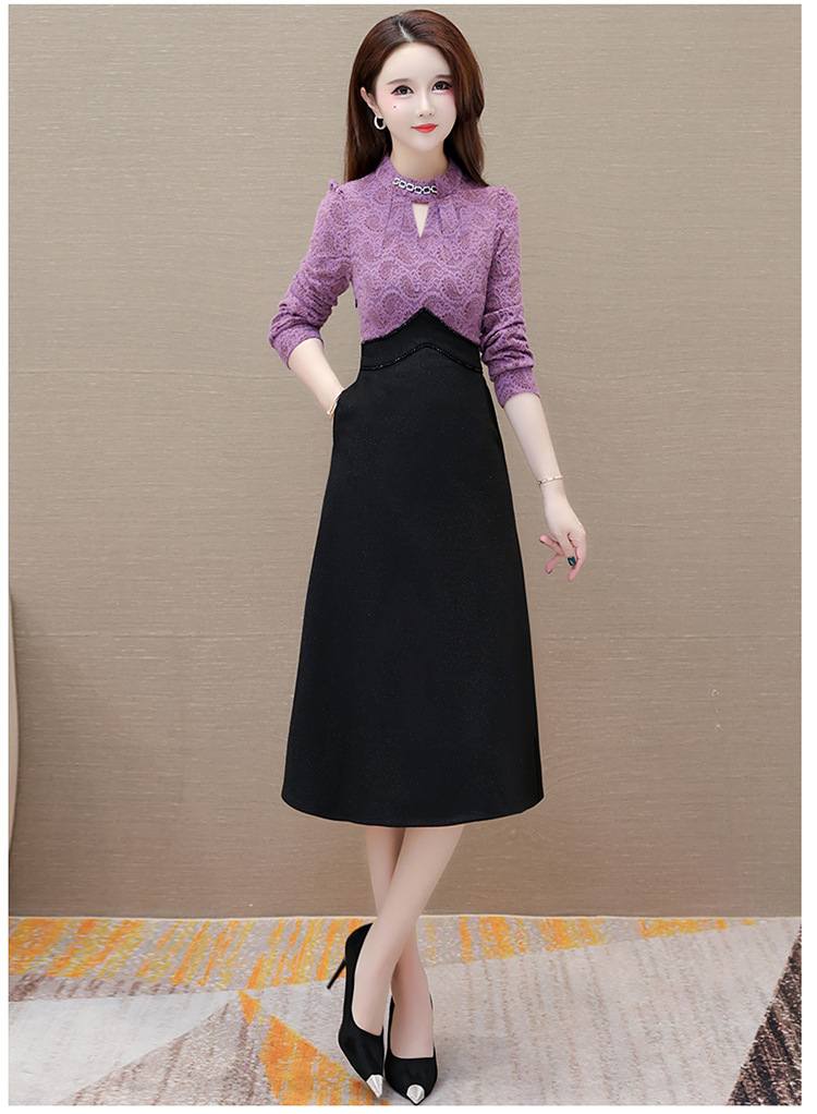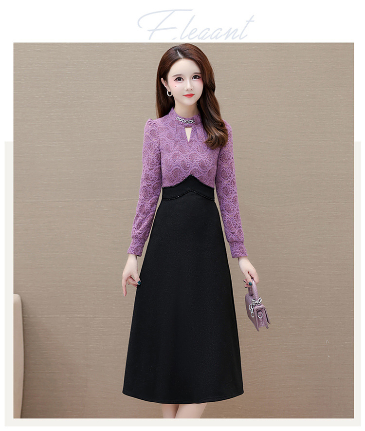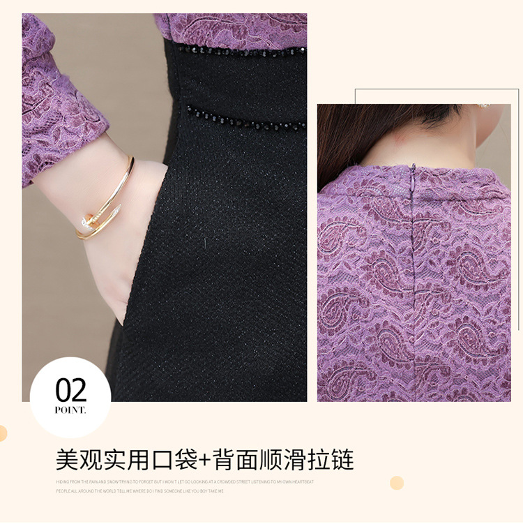 时尚气质加绒保暖连衣裙,拼结蕾丝网纱裙A字裙QYM-HL-23F070-Y