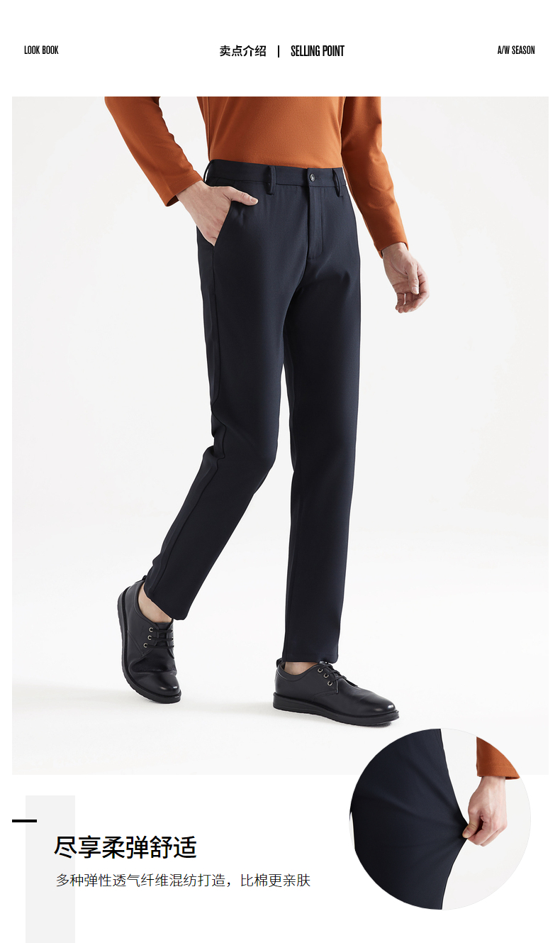 【特价】柒牌男装秋冬男士直筒长裤时尚职场青年百搭弹力休闲裤男w 119H7103W