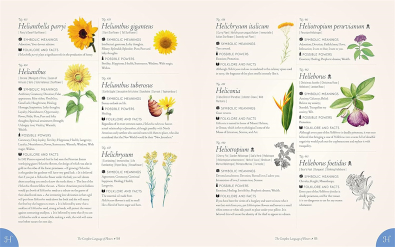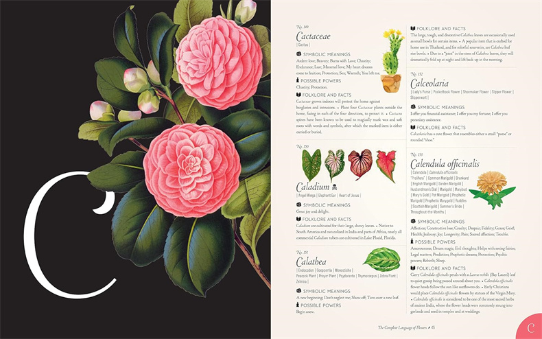 《完整的花语》是一部综合百科全书,提供 1,001 多种花卉的含义、力量、事实和民间传说。现在有袖珍版,方便随身参考。除了精美的视觉描述外,每个条目还提供了花卉的科学和通用名称、特征以及神话、中世纪传说、民间传说和花卉诗歌中的历史意义和力量。
