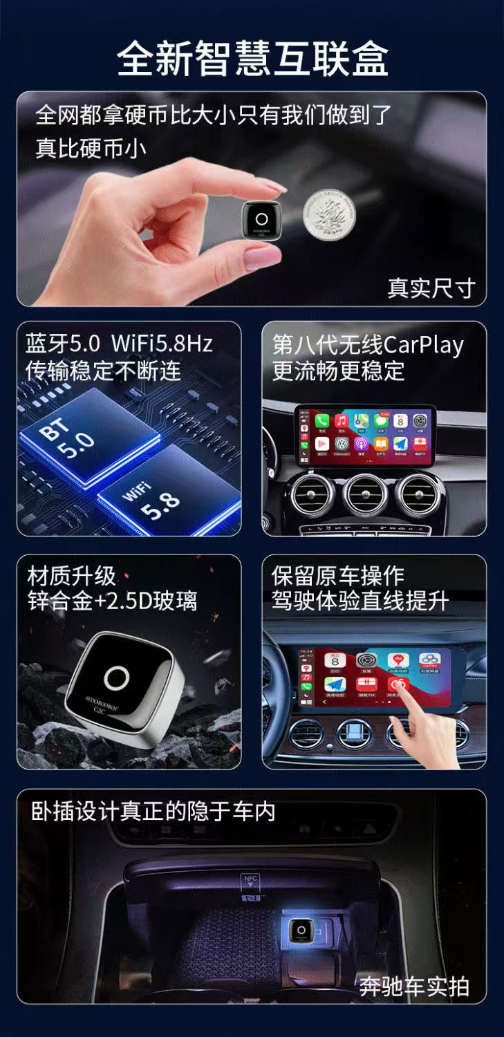 大众有线转无线CarPlay盒子适用奔驰奥迪宝马别克丰本田名爵导航
