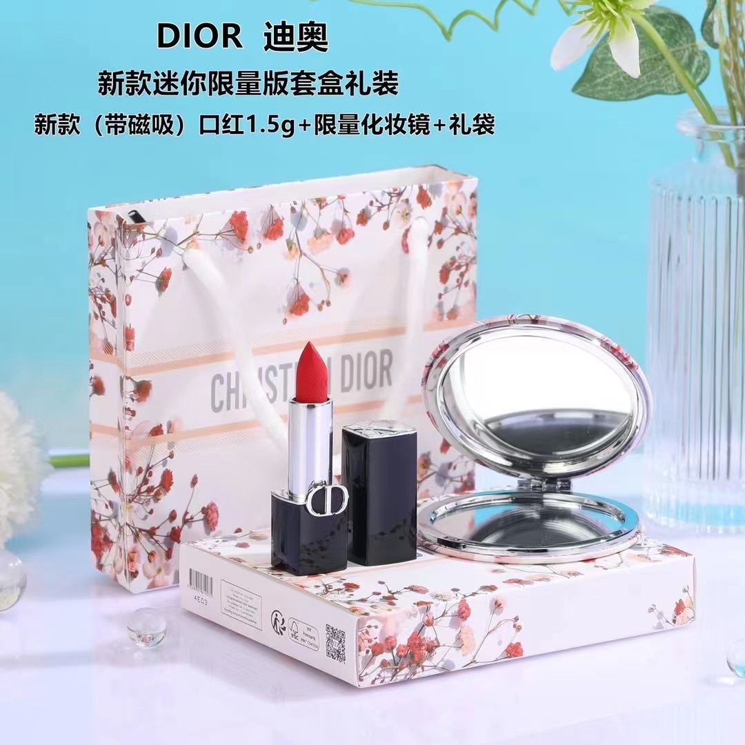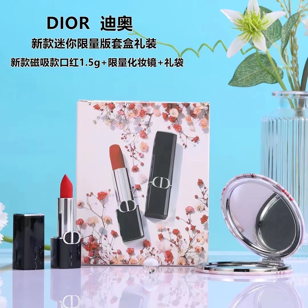 【品牌授权】迪奥迷你限量版套盒(迪奥高定化妆镜口红套盒) 口红1.5g+高定化妆镜 丝绒 999、丝绒 888、丝绒 840、丝绒 720、丝绒100