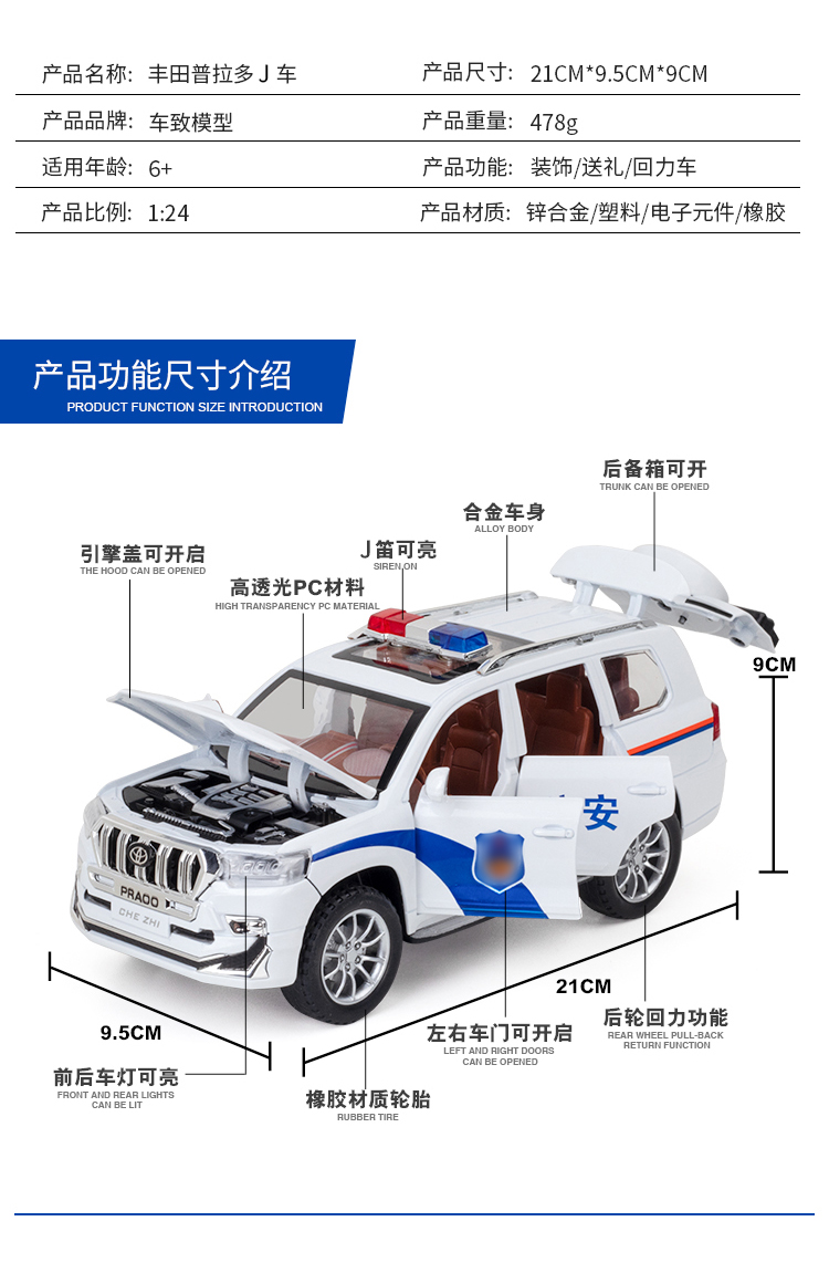 【实付满199送钥匙扣】【1:24普拉多J车】仿真汽车模型儿童玩具车礼盒装摆件