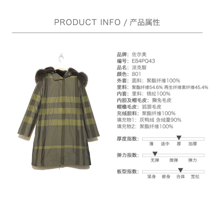 佐尔美佐尔美新品冬季新品中长款时尚过膝派克服外套E84PQ43