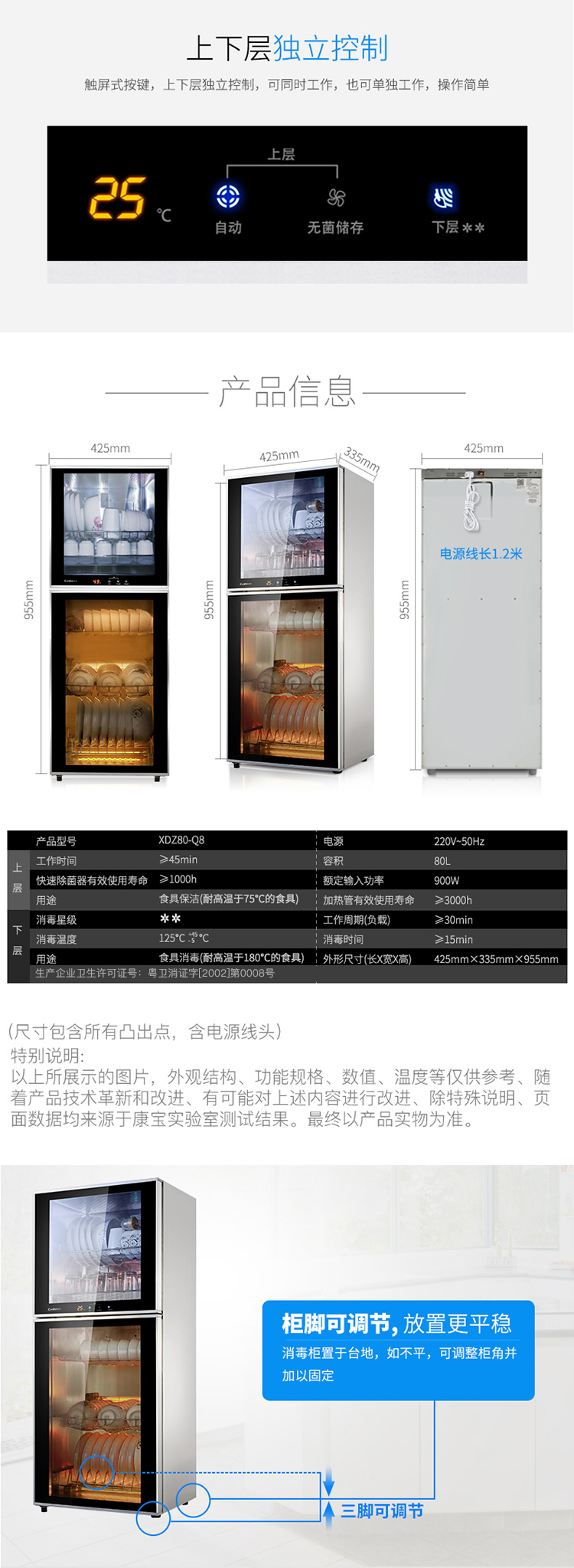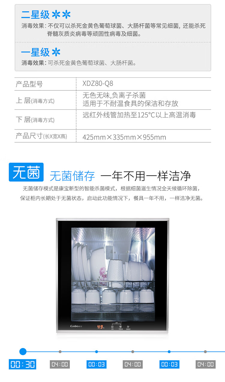 康宝Canbo消毒柜 二星级 双门台式XDZ80-Q8