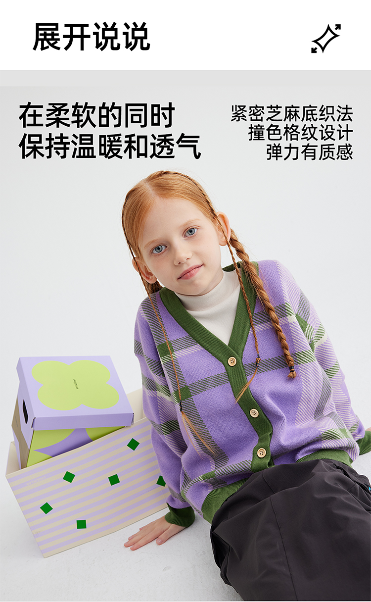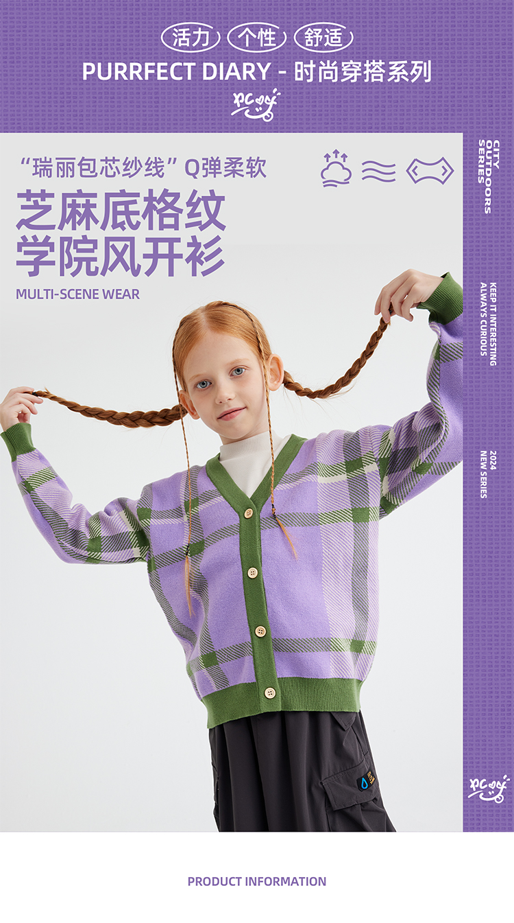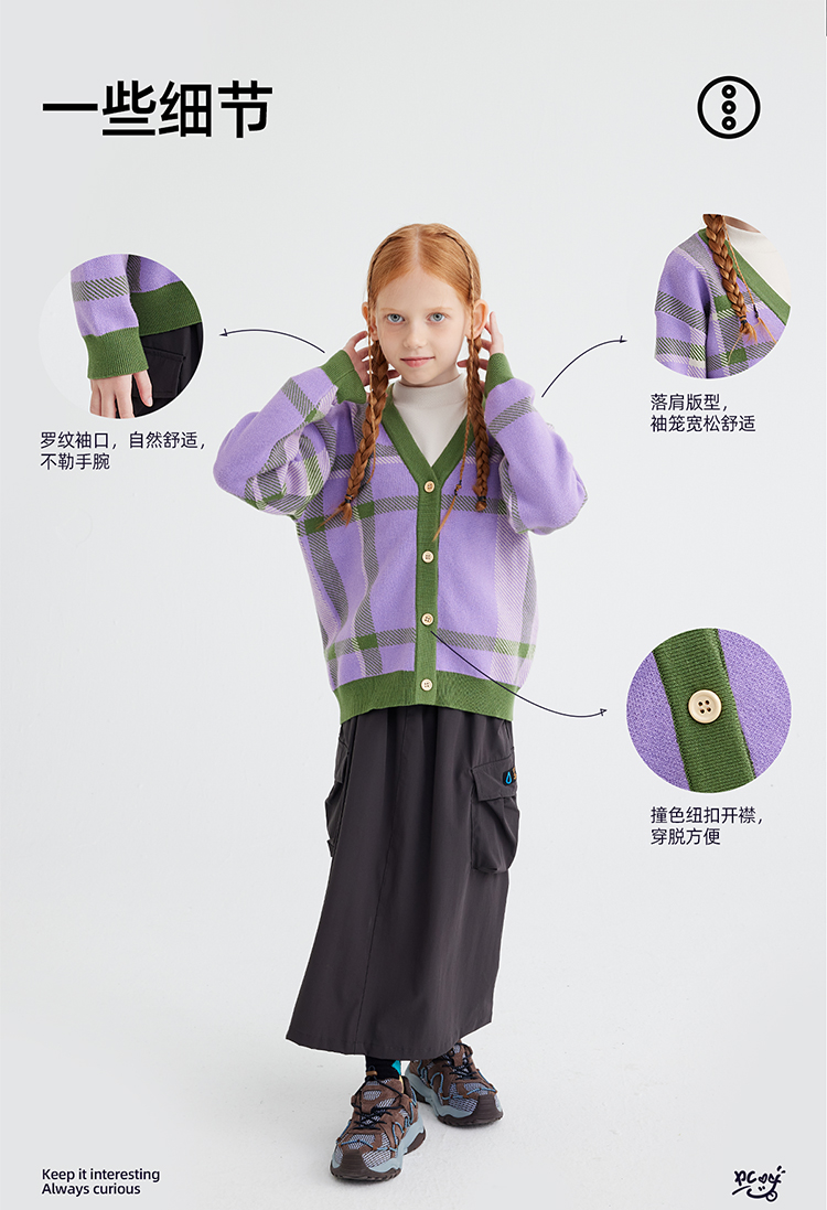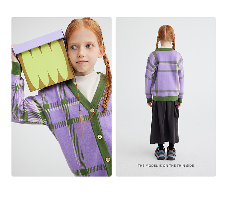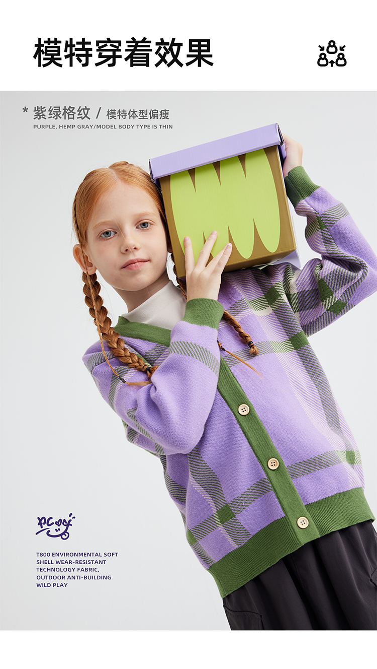 【芝麻底格纹】儿童学院风格纹开衫毛衣 PQMY2407