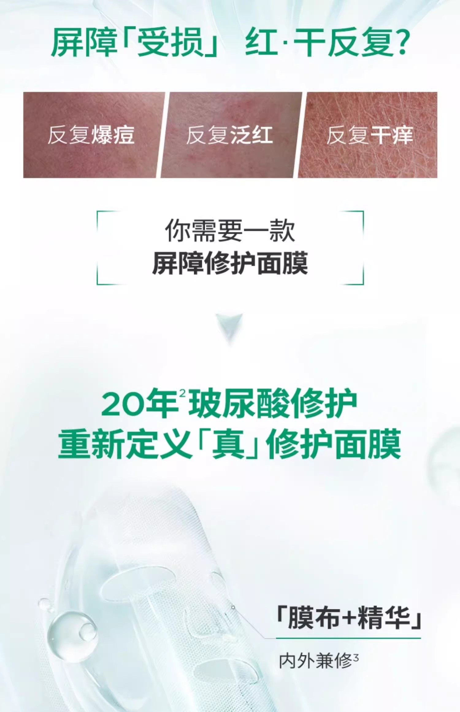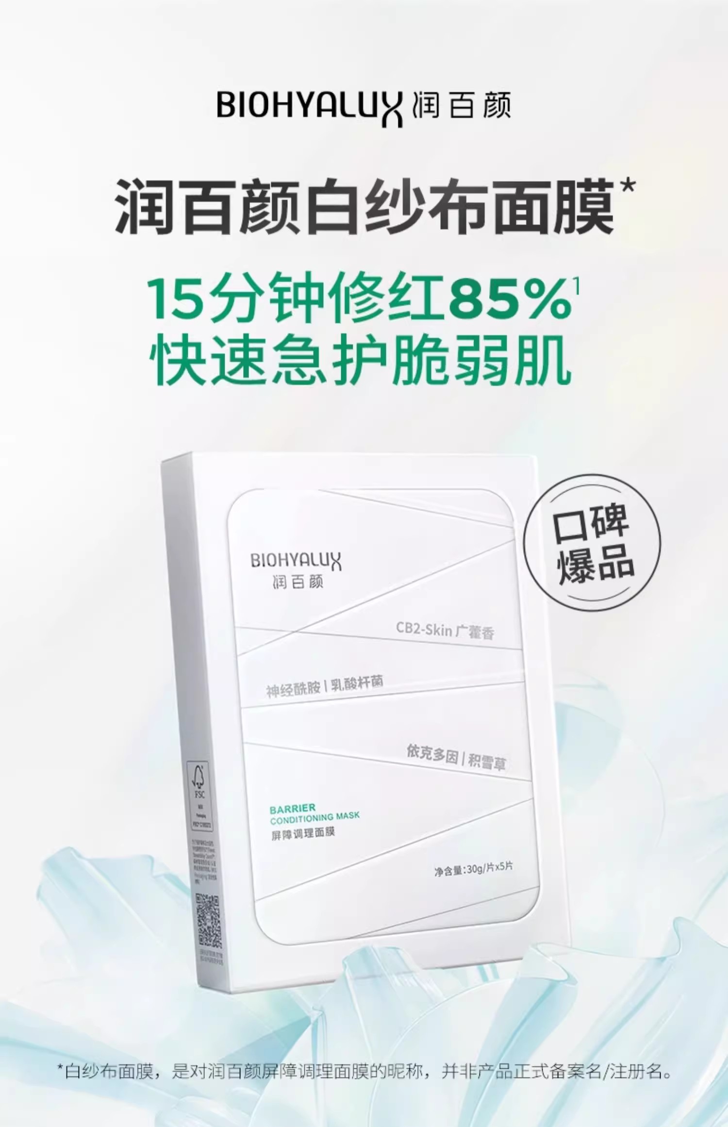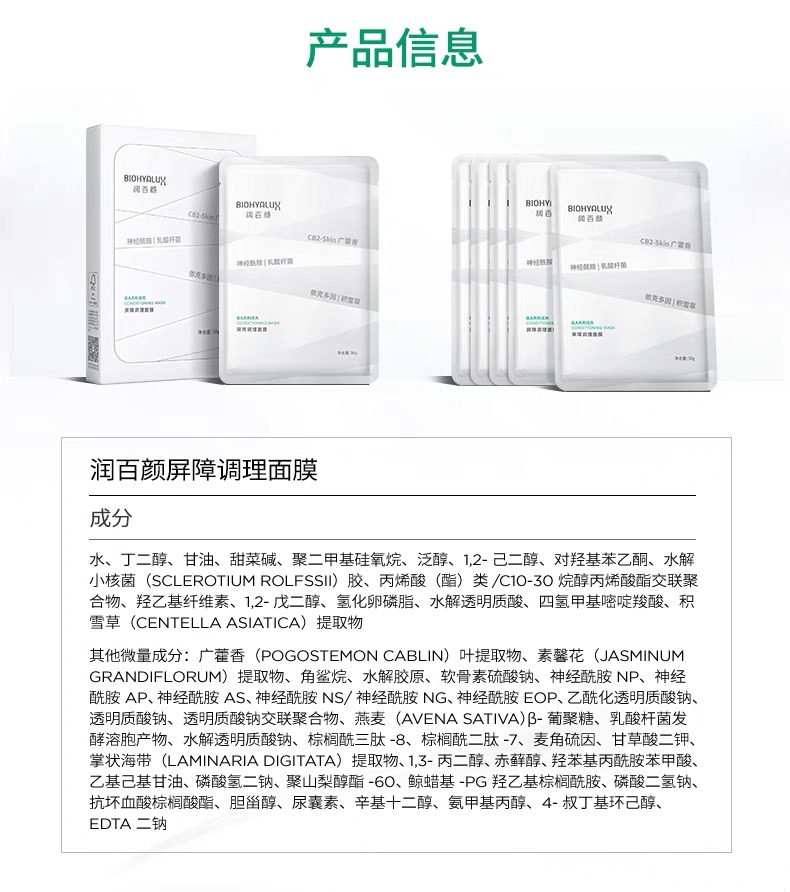 【多买多减】润百颜白纱布面膜2.0屏障调理敏肌修护玻尿酸补水保湿华熙生物30g*5