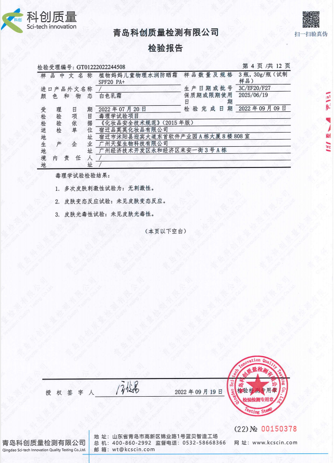 ✅温水洗净无需卸妆 植物妈妈物理水润防晒霜轻松清洁更方便 17名亚洲健康成年受试者,单次使用测试产品,通过受试者自我评估,结果显示与对照组比较,实验组用清水对植物妈妈儿童物理水润防晒霜洗卸的效果无显著性差异(P≥0.050)。