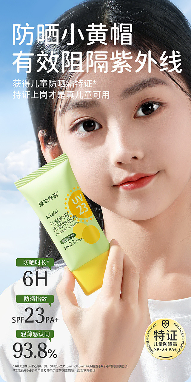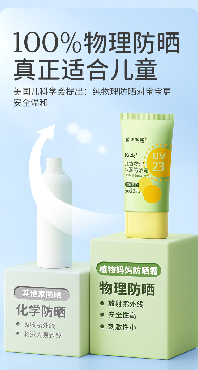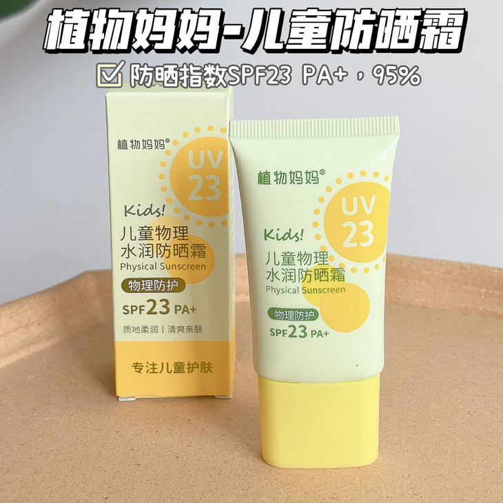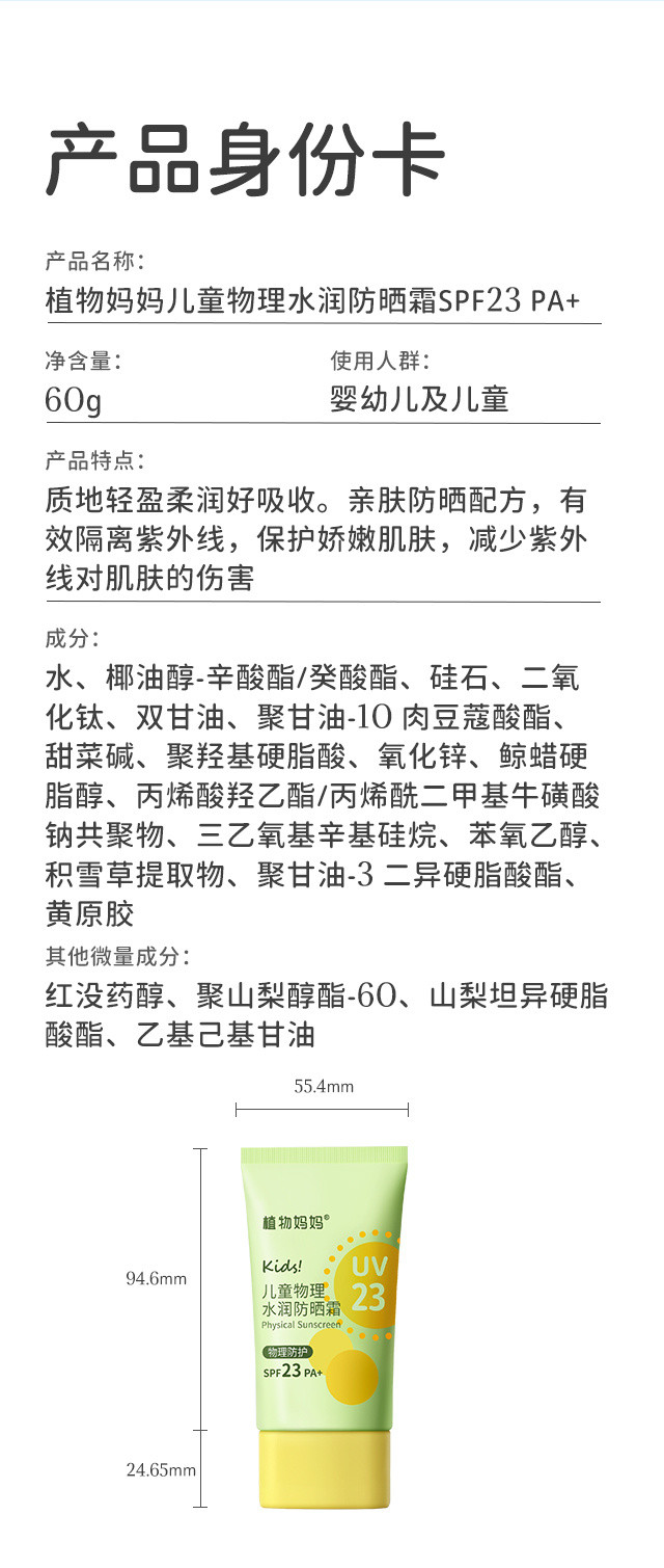 🔆【植物妈妈儿童物理水润防晒霜】 助力玩耍好时光多场景使用不变小黑娃 防晒指数SPF23 PA+,95%以上紫外线吸收率 亲肤乳液质地清爽好肤感,养肤级防晒 防晒时效长达6h,权威认证产O香精O酒精O刺激 持证上岗才是真儿童可用