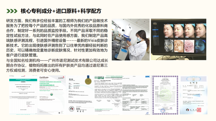 植物妈妈是自有工厂,从源头开始自己把握,做产品只看安全和效果,所有的产品公司的朋友们都会参与到试用里面。 比如,当公司做到一款洗面奶,考虑到小孩子的洗面奶最大的问题是怕辣眼睛。所以当拿到样品的时候,质检甚至会把泡沫往眼睛里泼,确定确实没有刺痛感,才会继续开发这个产品,对产品的把控很严格。 同时还会邀请很多宝妈,有新产品第一时间会寄给她们试用,她们觉得满意,才会投入到市场。 △植物妈妈实验室