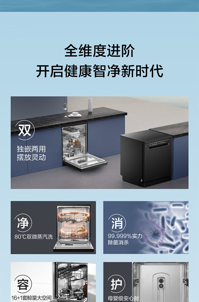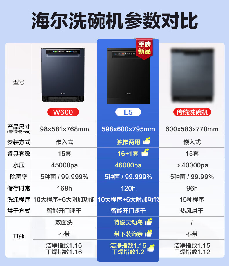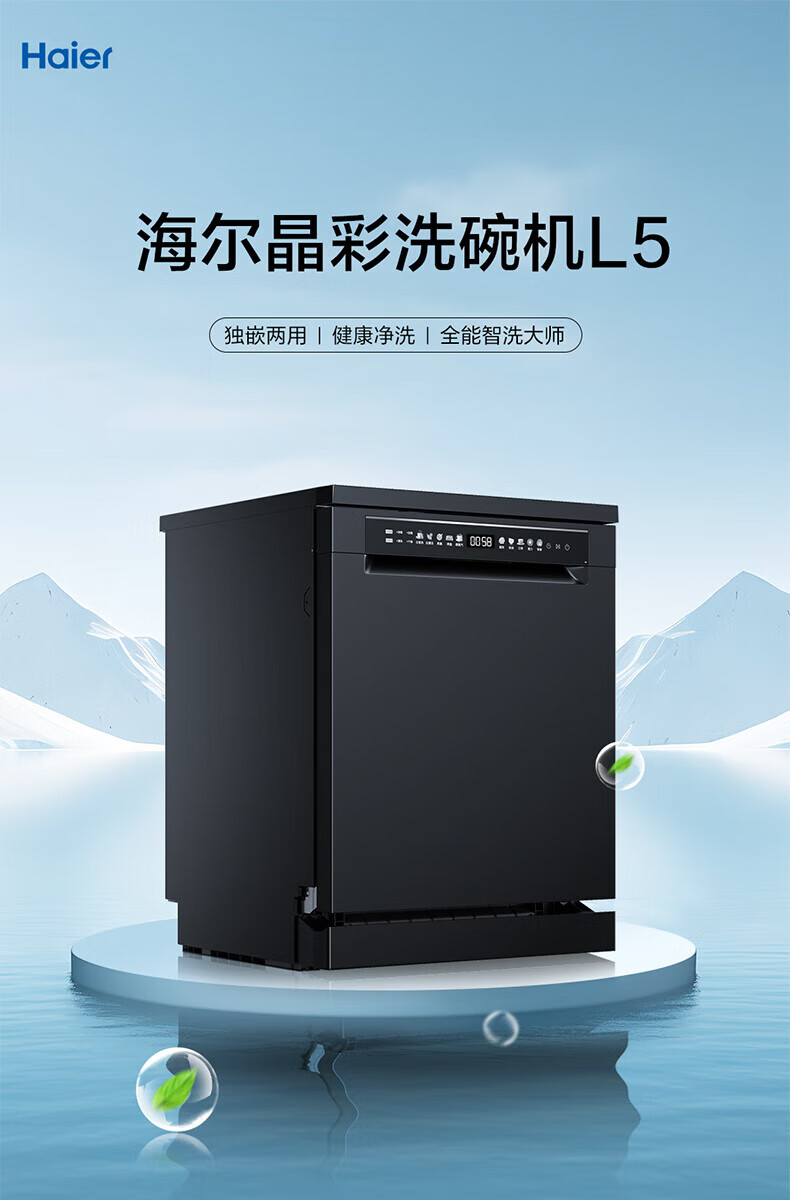 【新品】海尔嵌入式洗碗机带消毒一体机 超大16套独嵌两用洗碗机新品L5 变频超一级水效 三重洁净 智能开门速干 EYBW16328GHU1【116件巨能装】