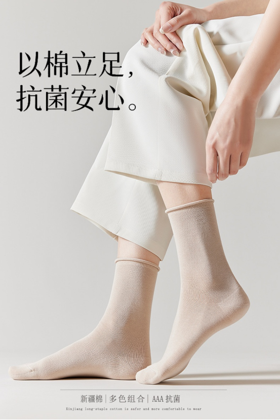 ☁️ 精梳棉 软糯亲肤 上脚像踩进云朵里,软乎乎不闷脚 吸湿排汗,暴走一天也干爽不臭脚