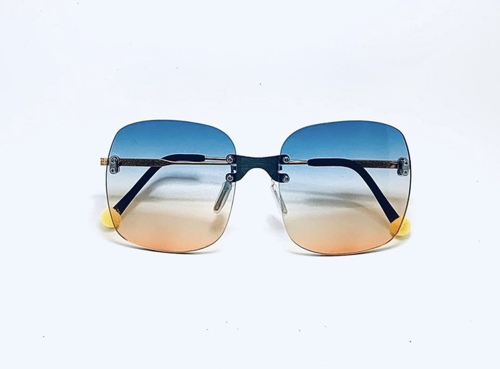 TYNVIE 拼接织花边长袖上衣-灰蓝色