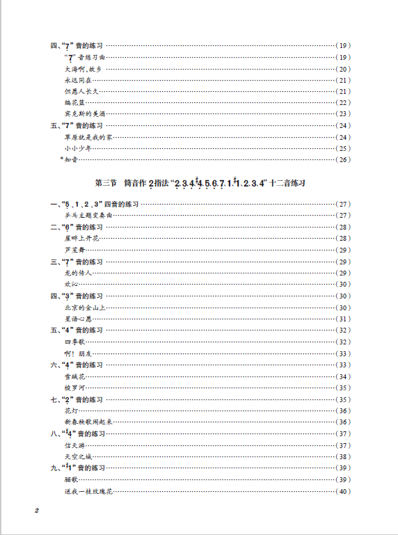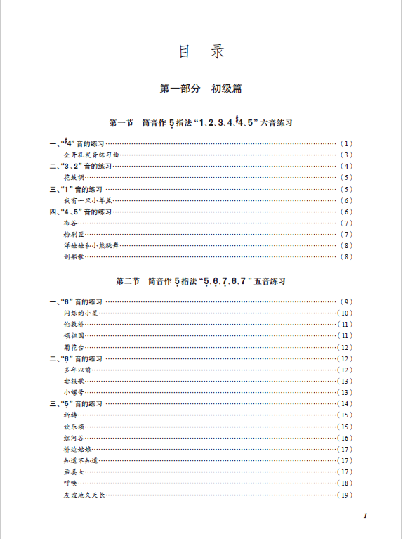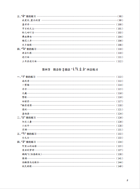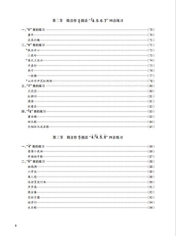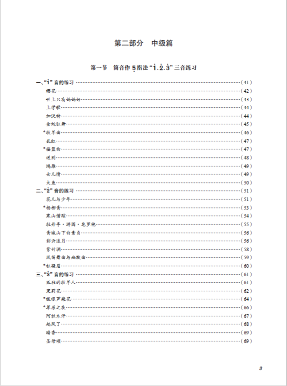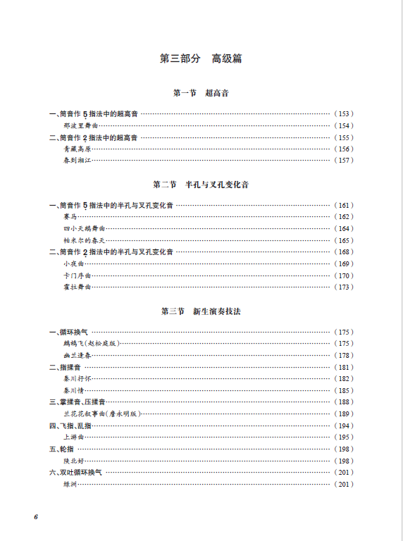此外,该教材在坚持循序渐进原则上,有意识地将曲目内容分初级篇、中级篇、高级篇三个部分。需要说明的是,所谓的初级、中级与高级,乃针对本教材编写实际情况而定,是一种相对意义上的级别的划分。目录中加“*”的曲目配有伴奏和音频示范,并以二维码的形式链接,可供对照练习。