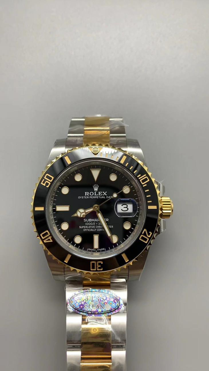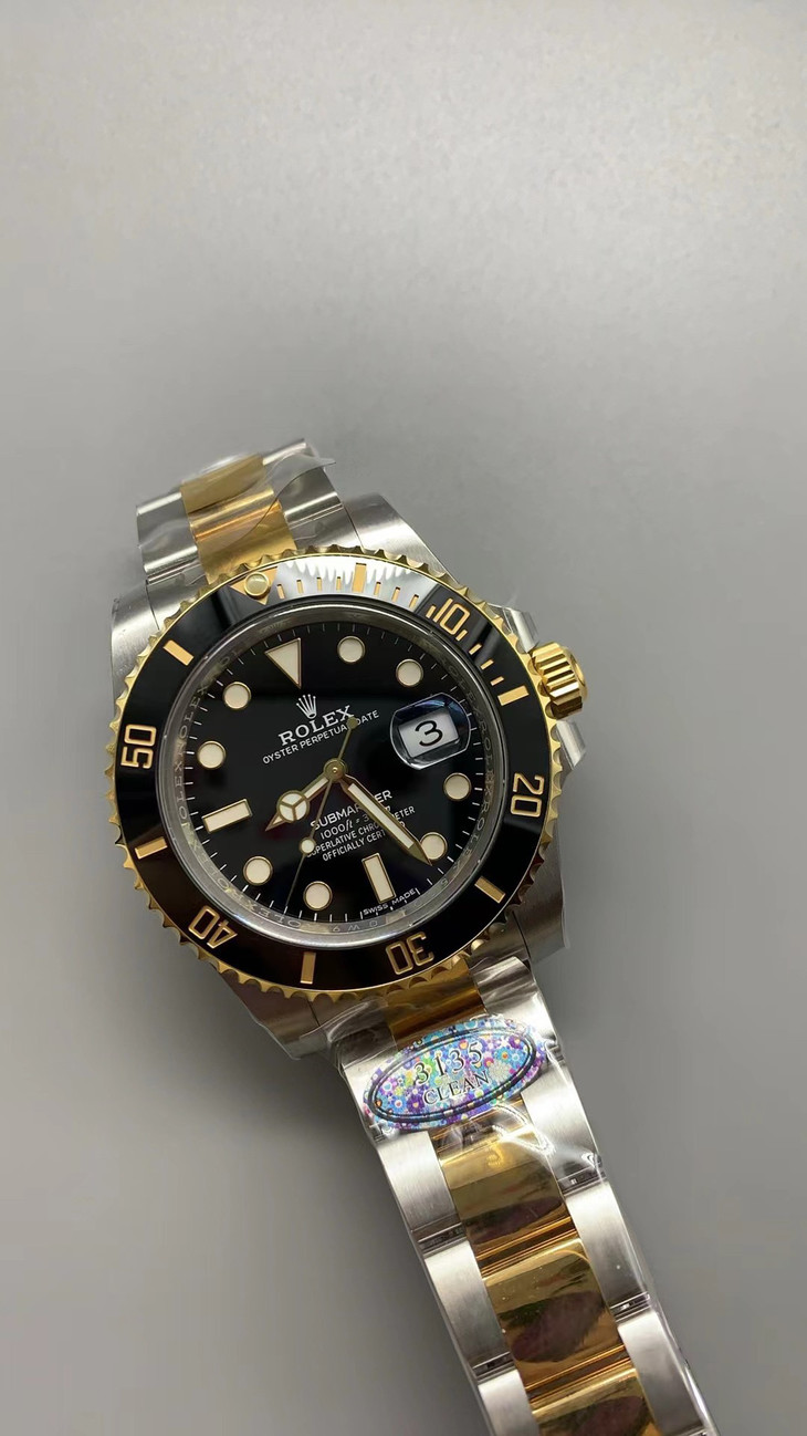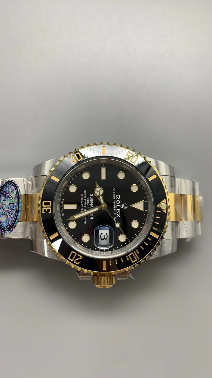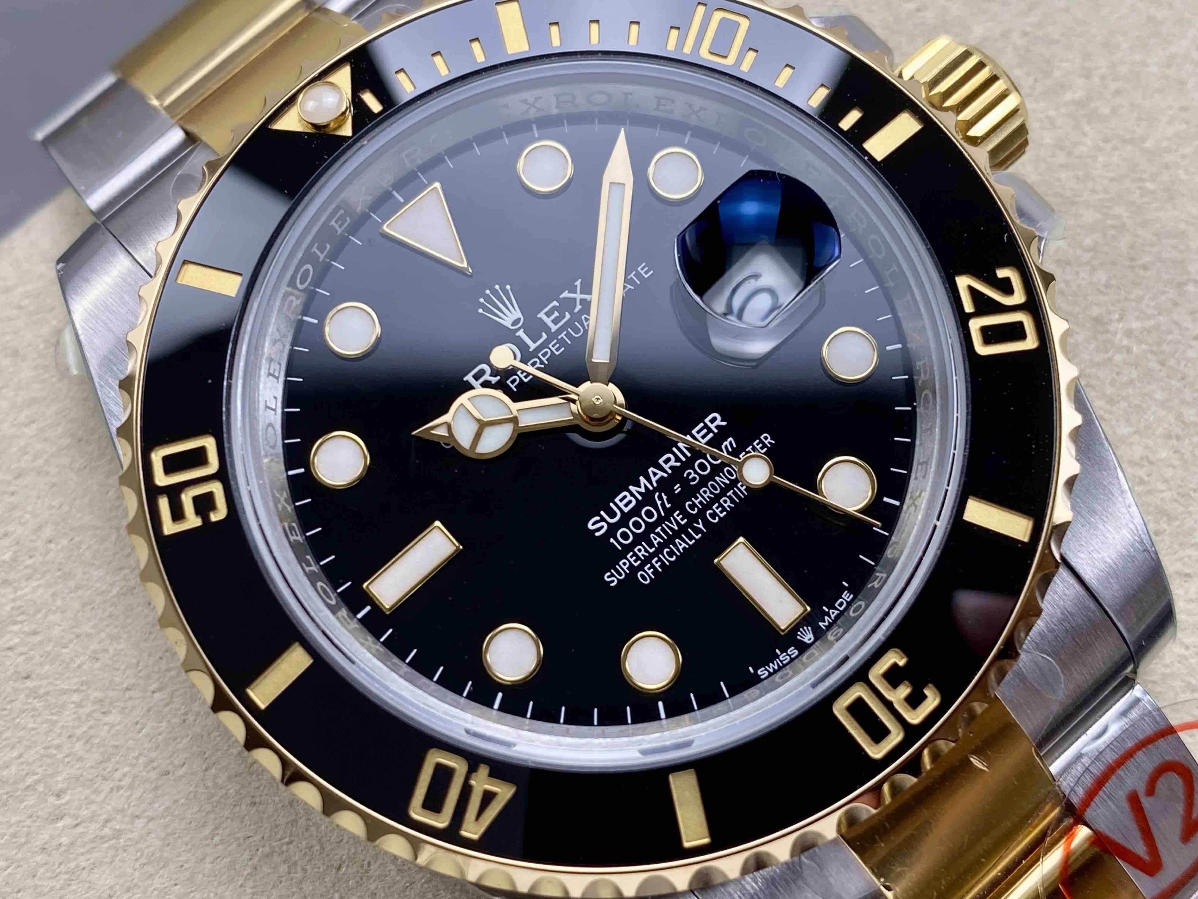 N厂v10包金版水鬼!top品质!非壕勿扰!V10版!劳力士经典SUB系列,蓝水鬼间金款,市场好版本 !材质真正18K包金,搭载原装进口2836机械机芯 ,更高要求可选装瑞士进口机芯(eta机芯)黑盘