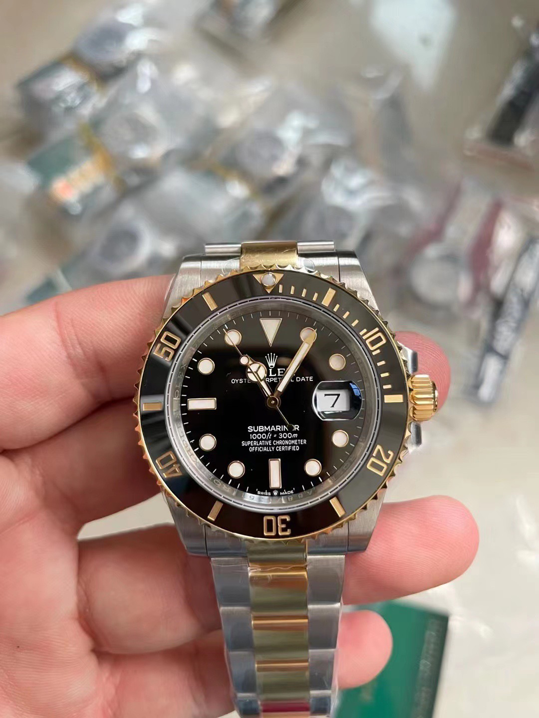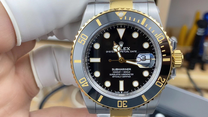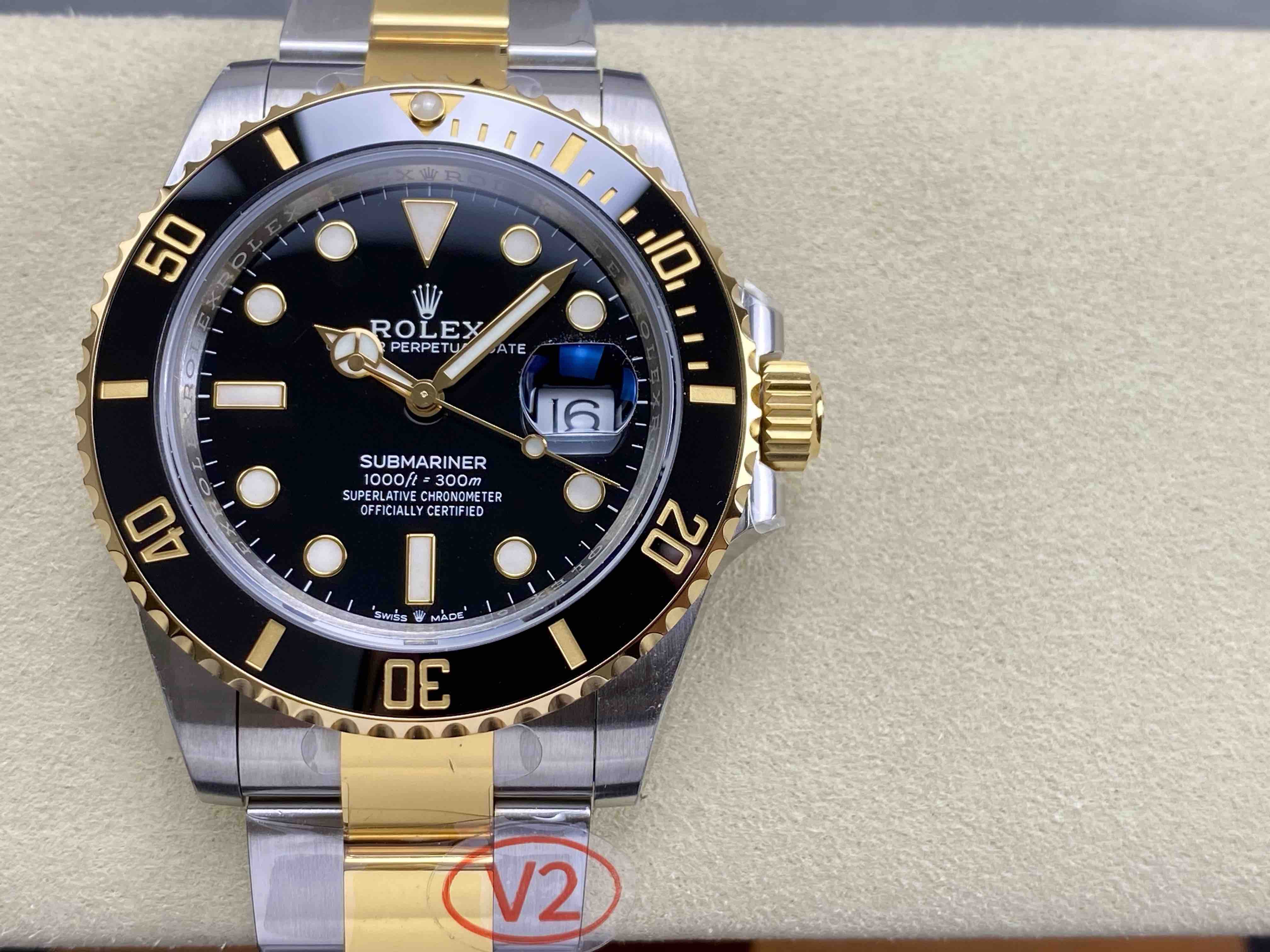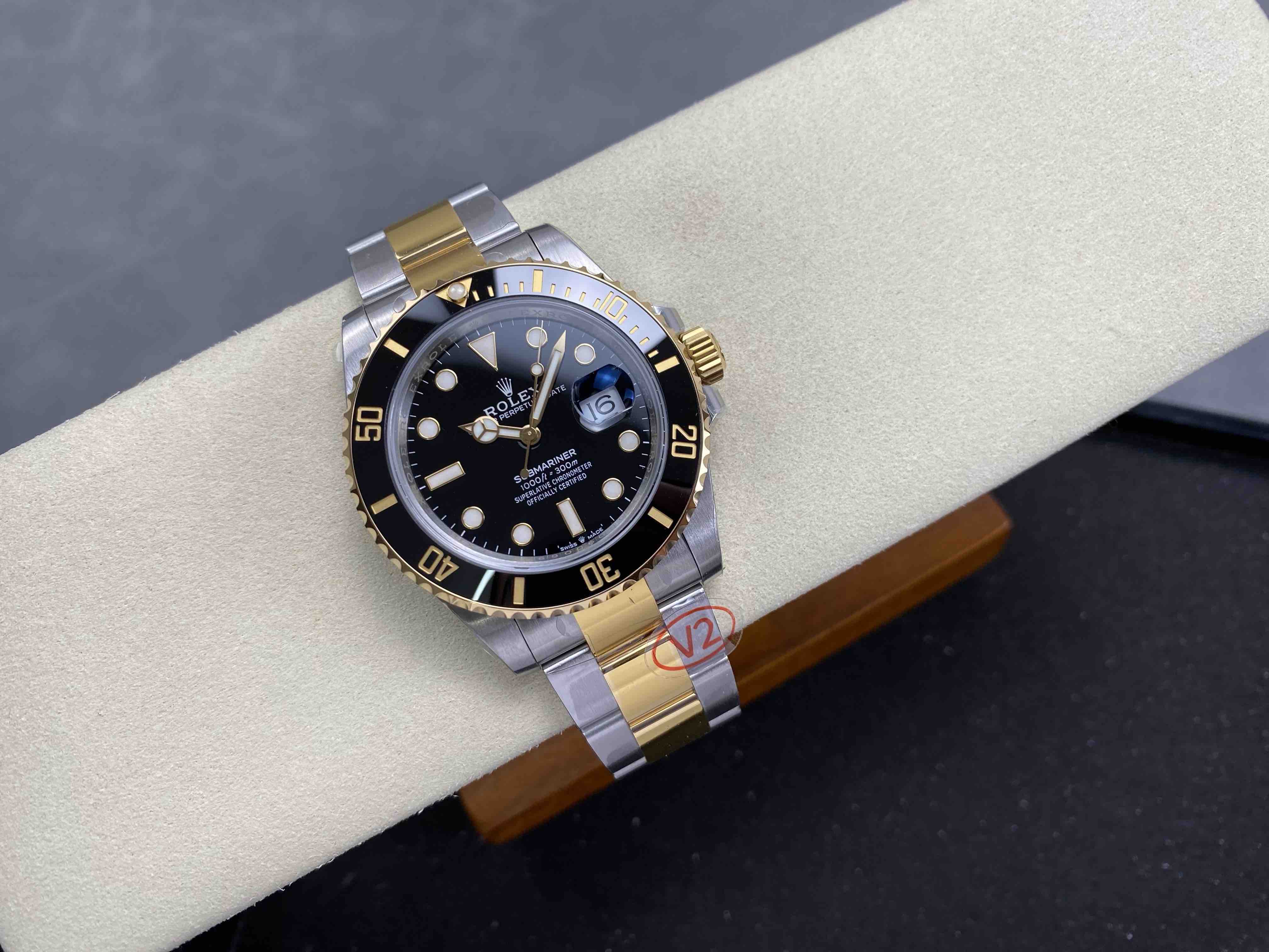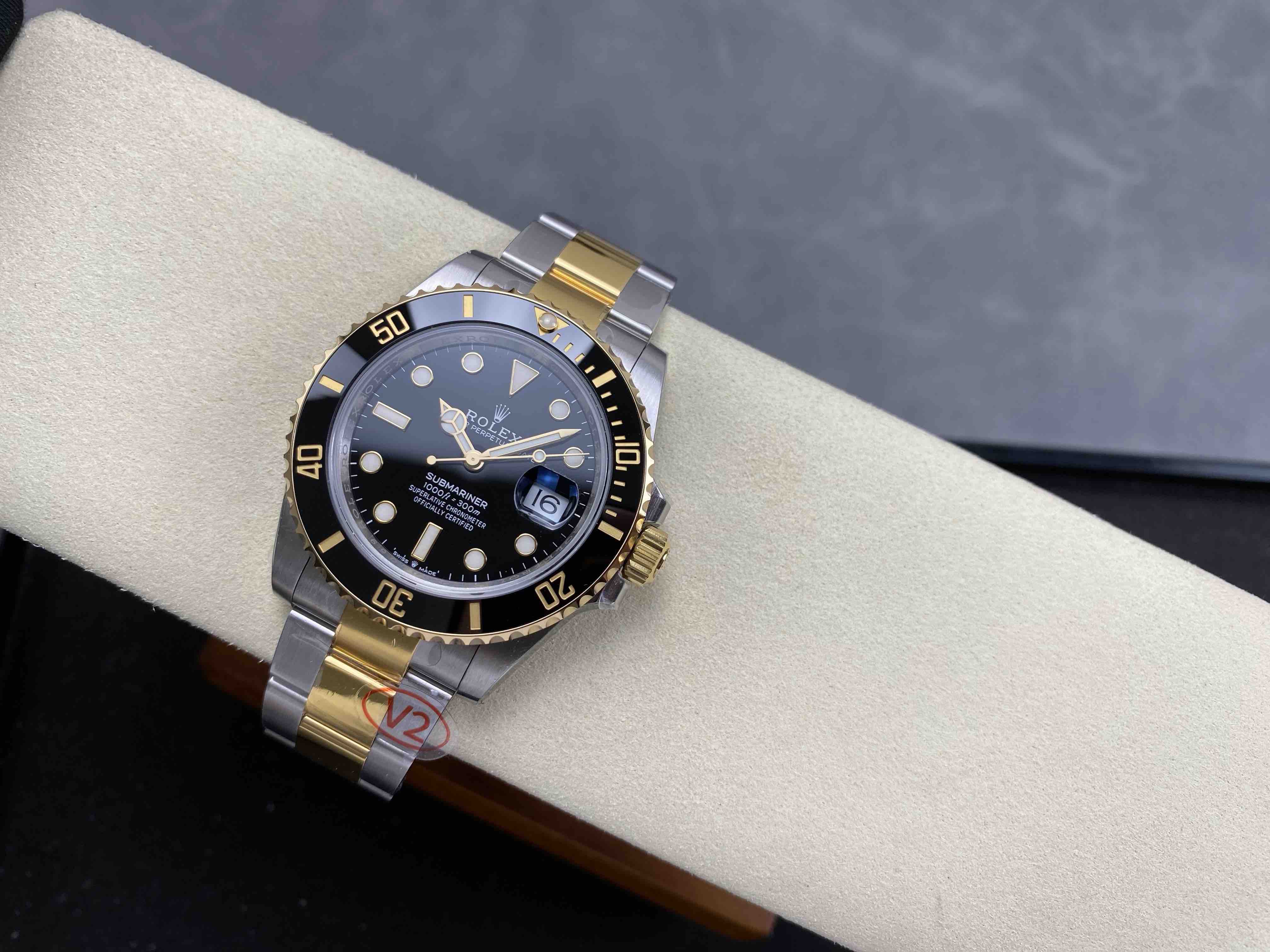 N厂v10包金版水鬼!top品质!非壕勿扰!V10版!劳力士经典SUB系列,蓝水鬼间金款,市场好版本 !材质真正18K包金,搭载原装进口2836机械机芯 ,更高要求可选装瑞士进口机芯(eta机芯)黑盘